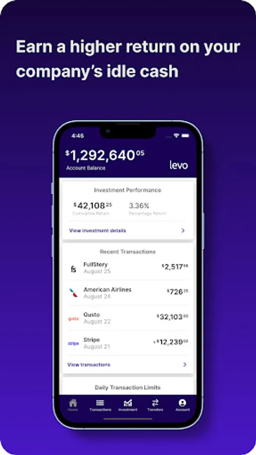Levo Treasury is a treasury management account that helps you earn a higher return on your company’s idle cash.