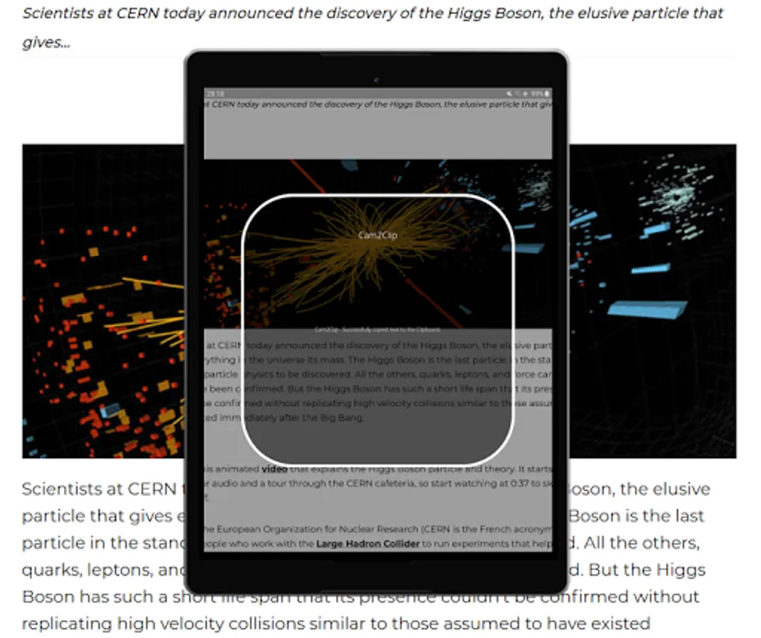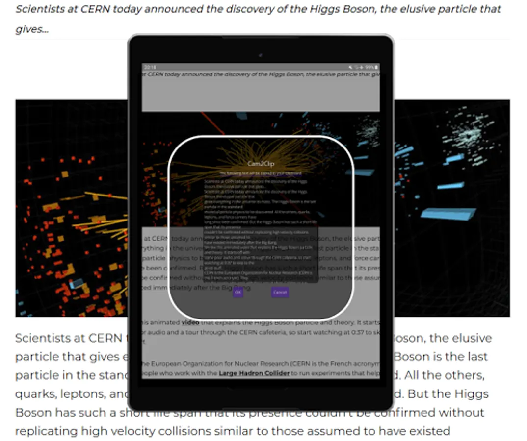 Cam2Clip is an online app to help you to digitize and copy text from your camera directly to your clipboard. You can also load images via gallery/share images from other apps to Cam2Clip and digitize their content.