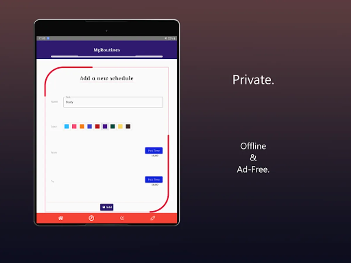 MyRoutines is an offline, ad-free, lightweight & personal time-table assistant to help you manage your schedules.