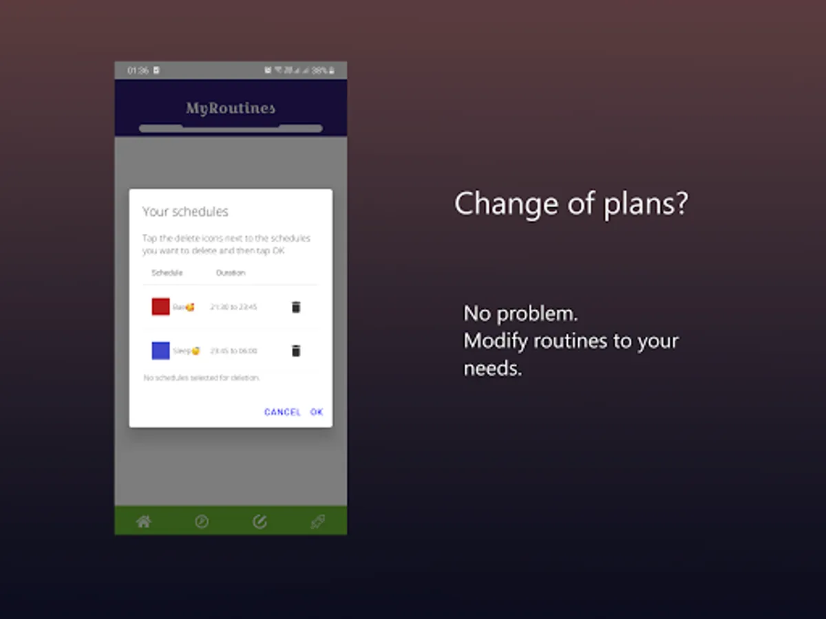 You don't have to set several alarms ringing over and over for all the chores you do. With MyRoutines you can manage your daily routine with ease.
