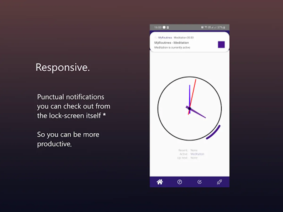 Simple and intuitive, MyRoutines organizes your schedules round the clock into neat automatic notifications which allow you to track your tasks right through your phone's lock screen.
