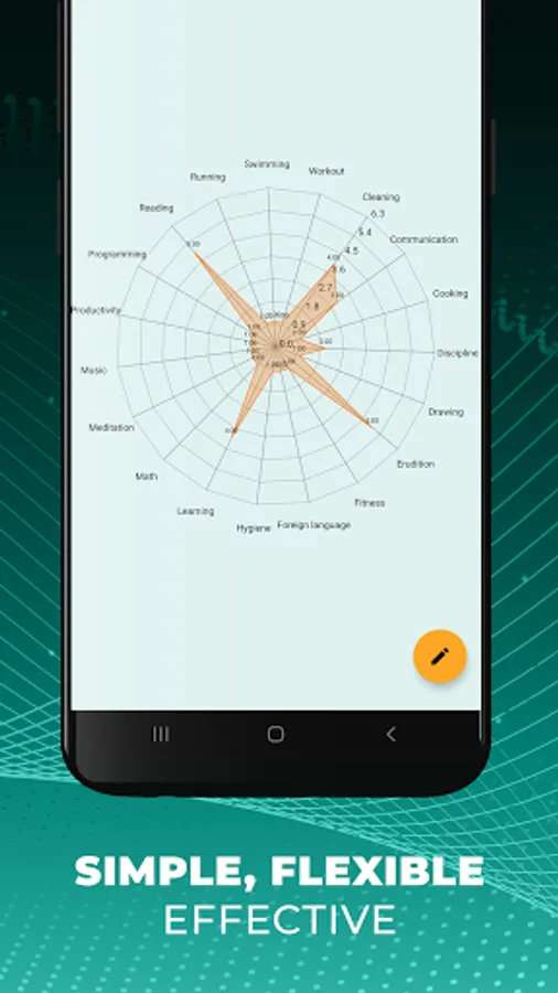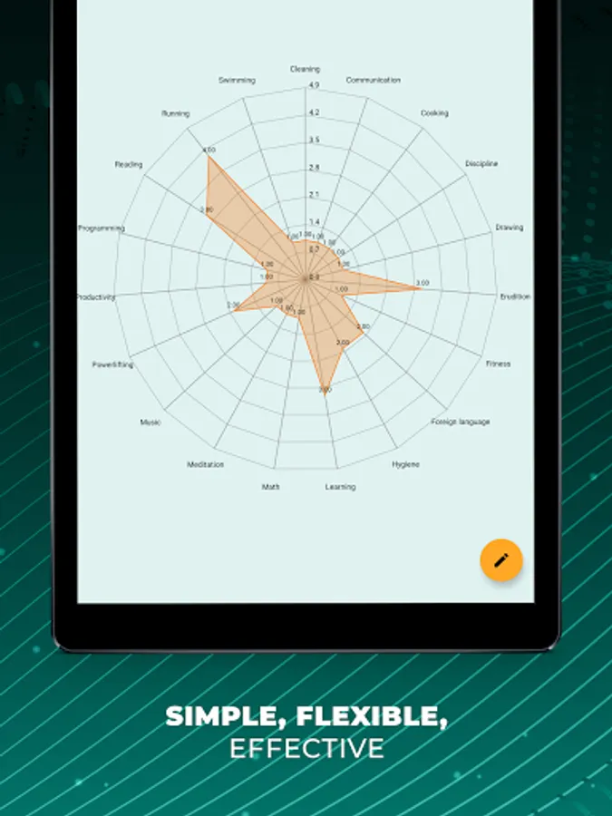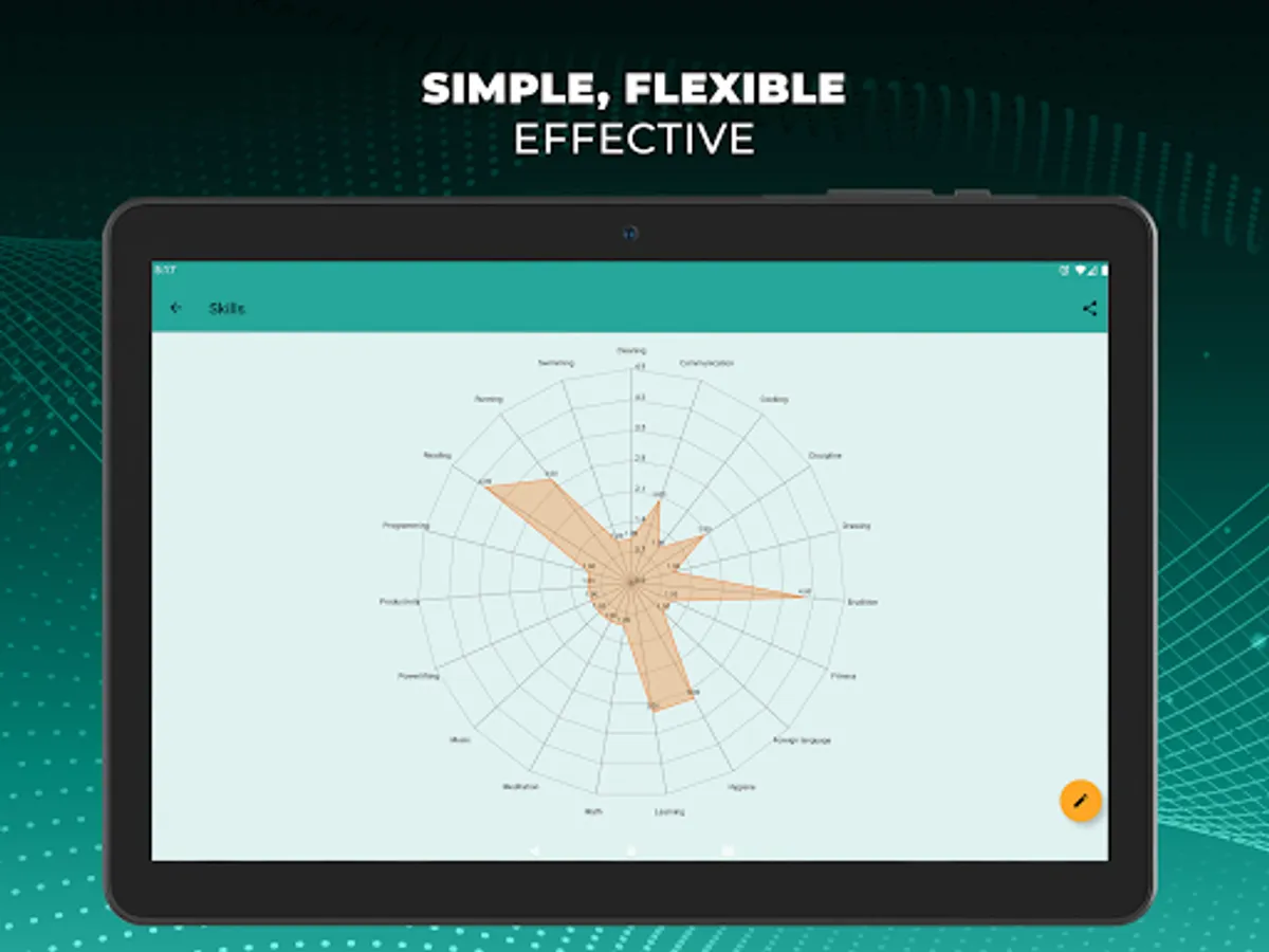Track personal growth in different areas with customizable characteristics. Increase your everyday productivity by creating flexible system with skills. Basic sets already added to organizer.