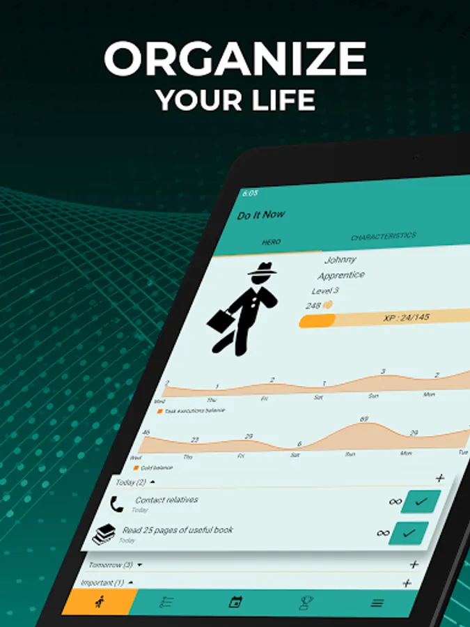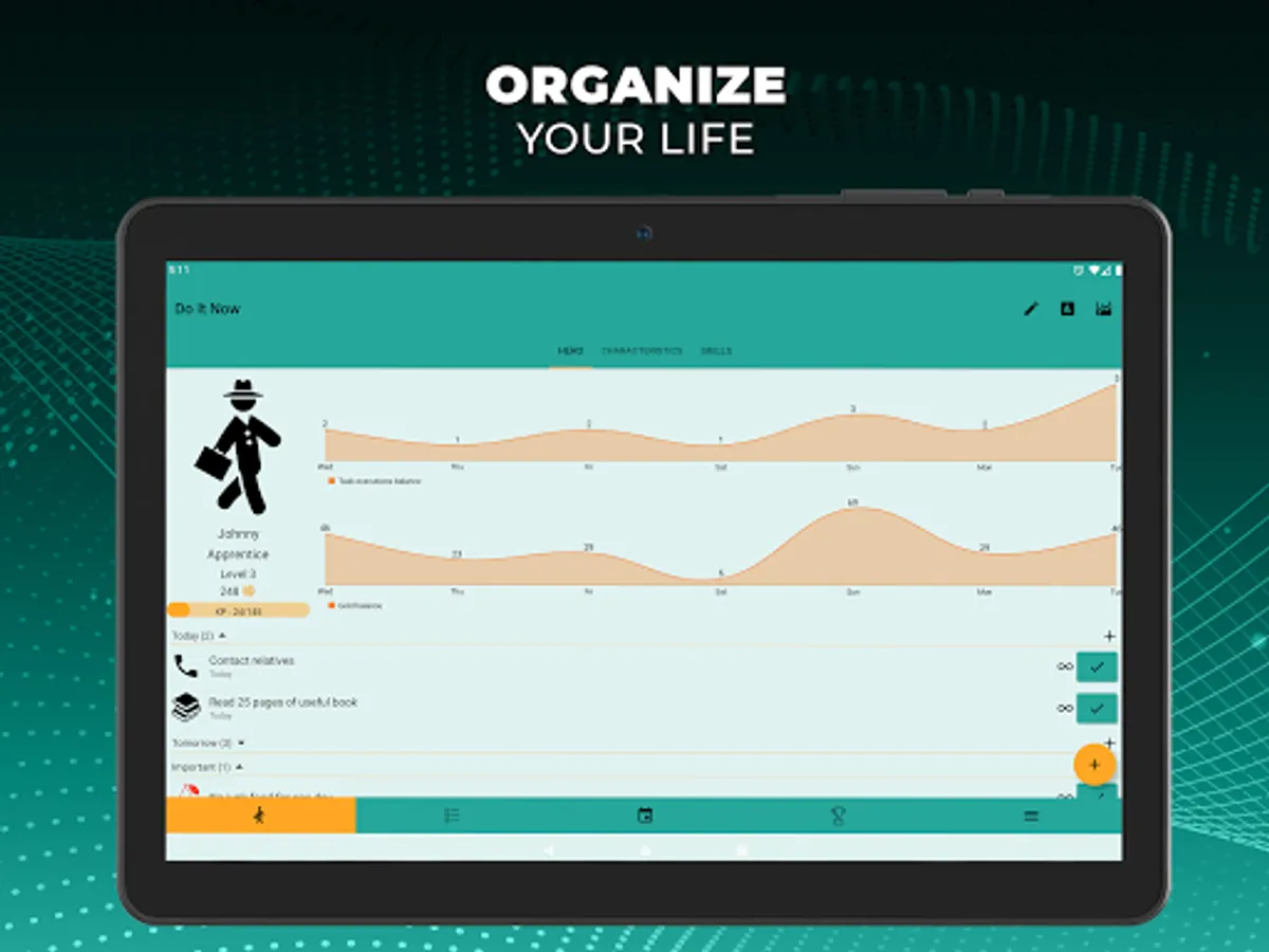 Organize your life with Do It Now - fantastical to do list which helps you to add game elements into your everyday tasks, make schedule, add daily reminders and organize your life with built-in skills, characteristics and level ups.
