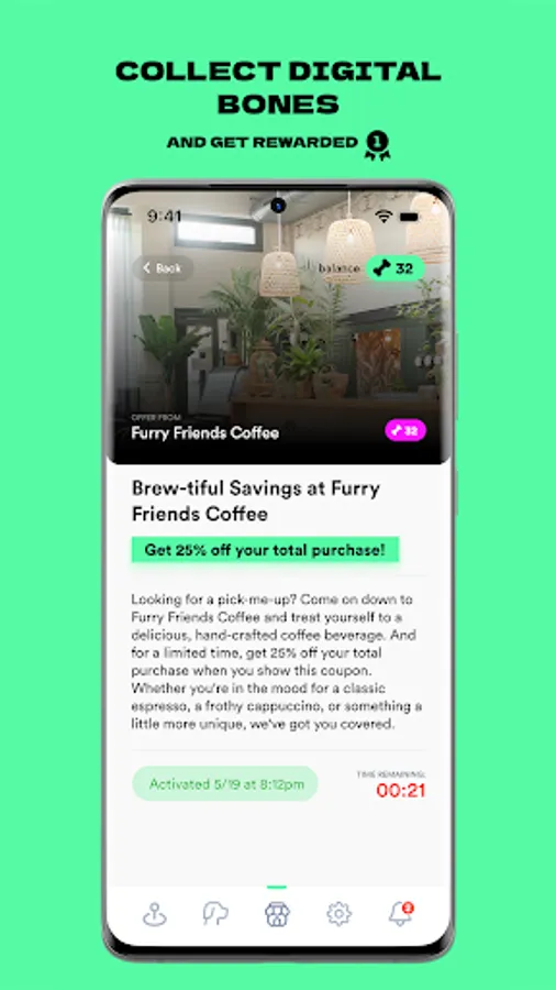 Redeem the digital bones you've earned during your dog walks for exciting prizes. These bones can be exchanged for exclusive offers from our partners in the LEV Marketplace.