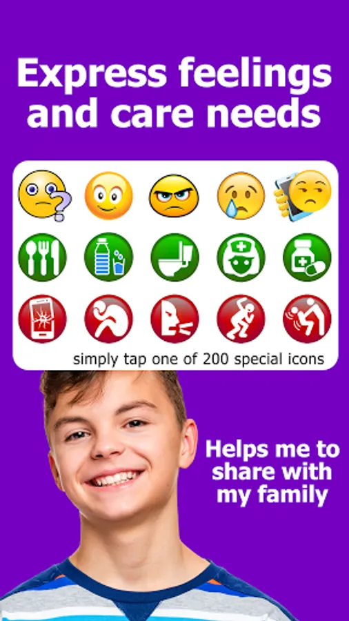 - and the app makes it easier for a person to express their feelings and emotions. Simply choose and click large emoji icons (includes special anti-bullying icons to help you understand how they are feeling when you are not with them).