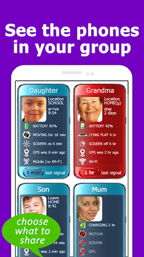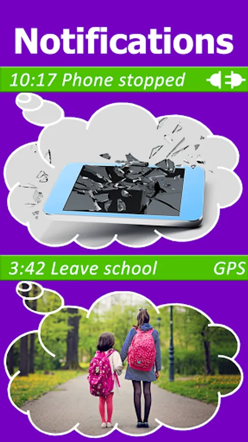 - the app can notify you if your loved ones phone is switched off or has no signal (and the app gives you his GPS location when this happened).