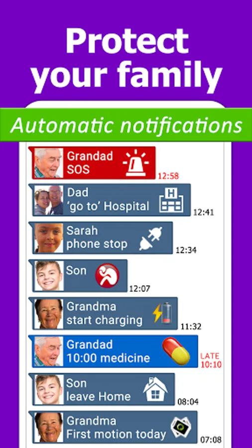 - and the app helps to avoid those problems when a loved one’s phone has no power. It lets you see when they charge their phone (or if they forget) and it notifies you if their battery is getting low (built-in battery sensor).