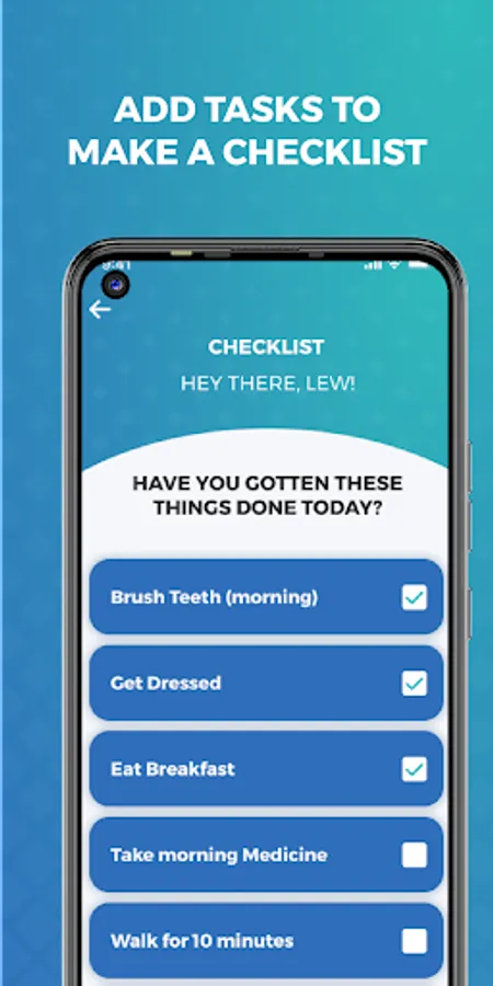 · Daily Checklist- Fully customizable. Your loved one will get a notification when it’s time to do the task, and you will get a notification when the task has been completed.