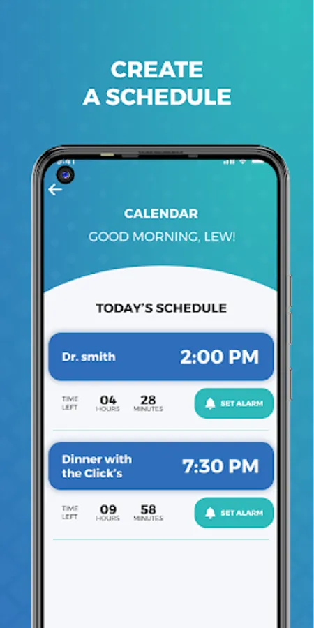 · Daily Calendar – Your loved one will see what is coming for the day and how much time before each event happens.