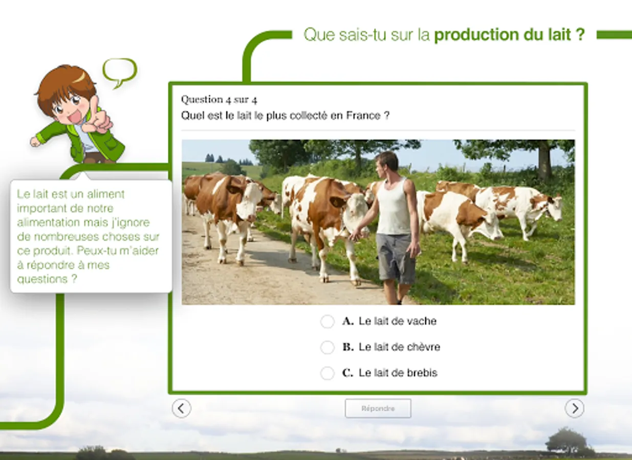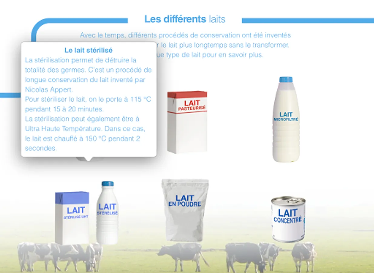 An incredibly friendly, dynamic and colorful universe that raises questions: how does it happen milk on our table? How to store it? What is it used for our organization? And provides students with answers. Assisted by Gabriel, a character shown their age, the course of the milk will have no secrets for them. free digital tablet app.