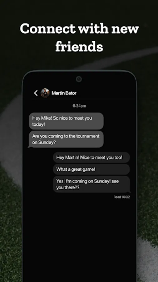 Weekly game schedule, times and availability, location / field map, messages, add friends, or pay online.