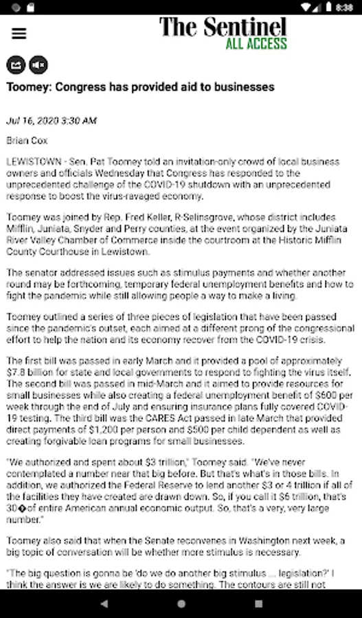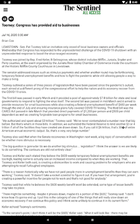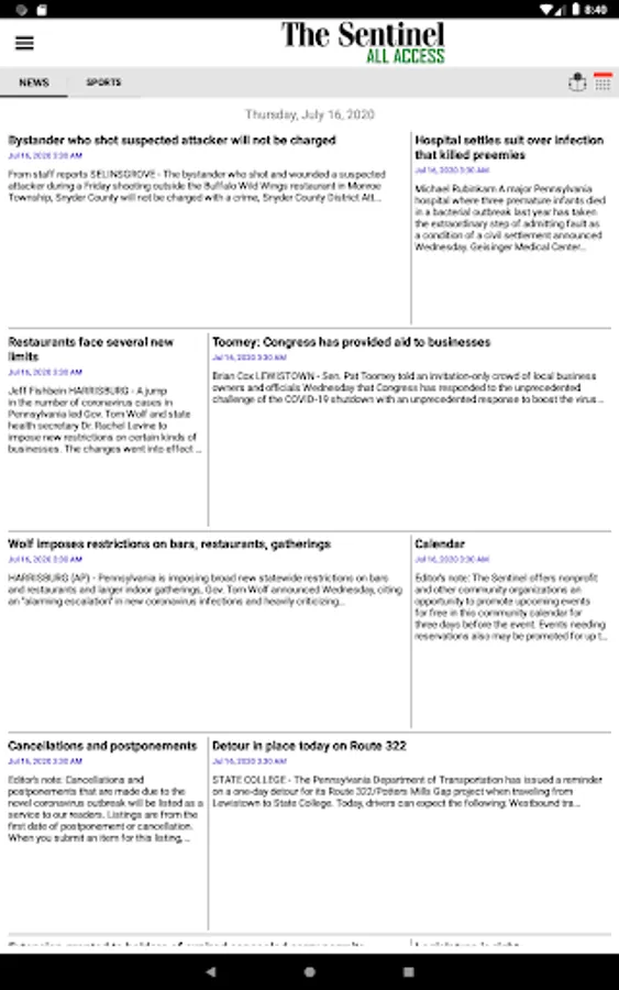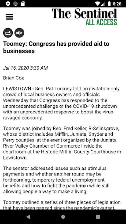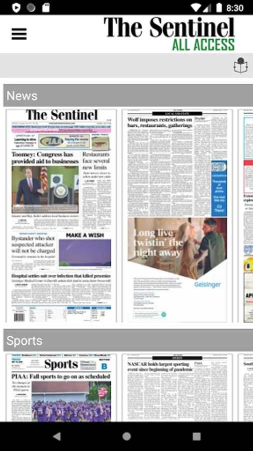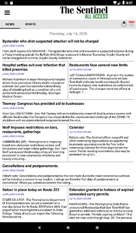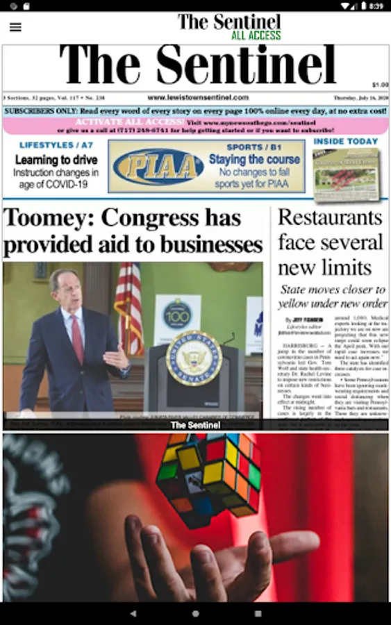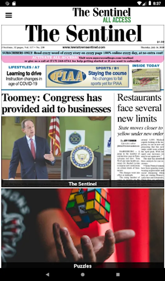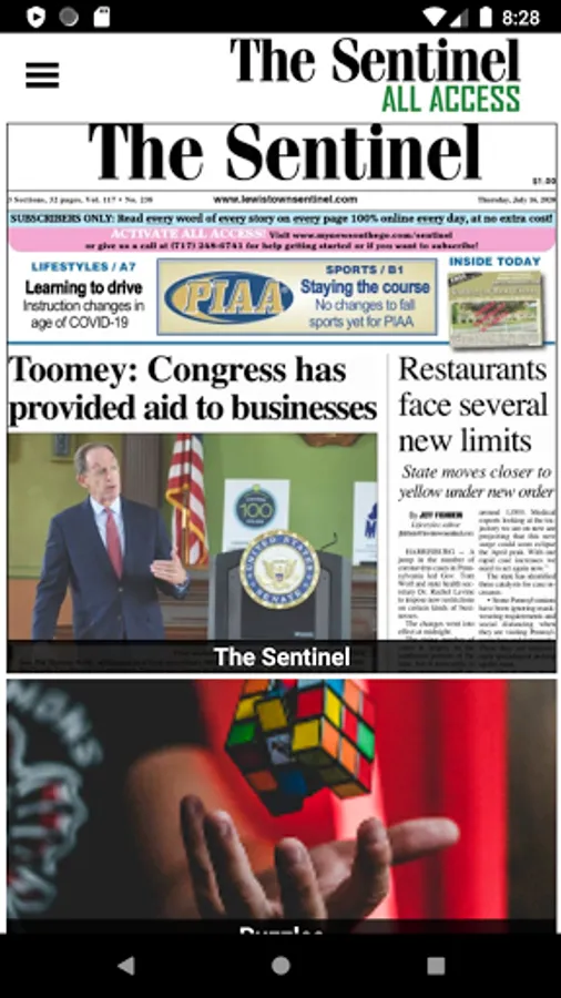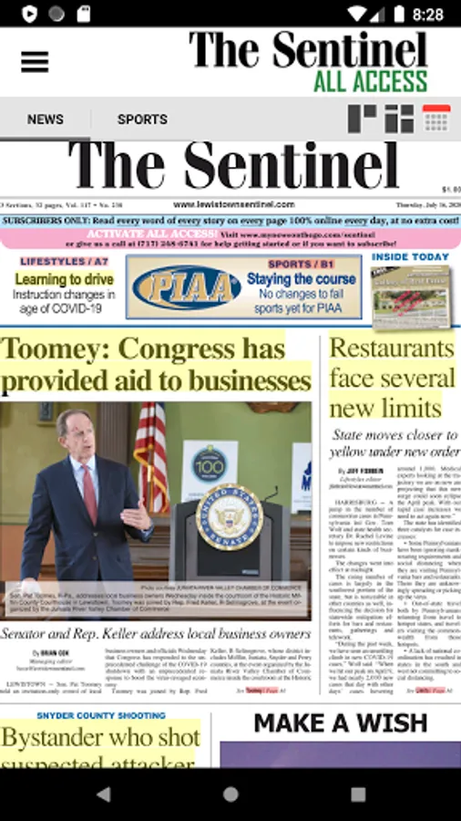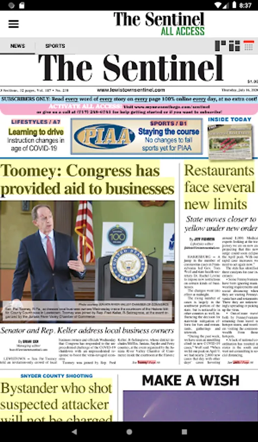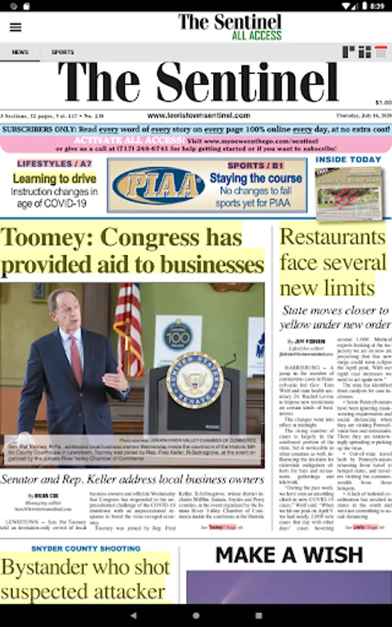 Stay on top of news from Lewistown and surrounding areas by receiving the full print version of the The Sentinel on your Android device. Every page of every edition is delivered to your device. The Sentinel is the best source for local and national news, sports, weather and features in the Lewistown and Mifflin County area. Download the app to view the printed pages of the newspaper or read headlines and stories along with related photos in a built-in story viewer.