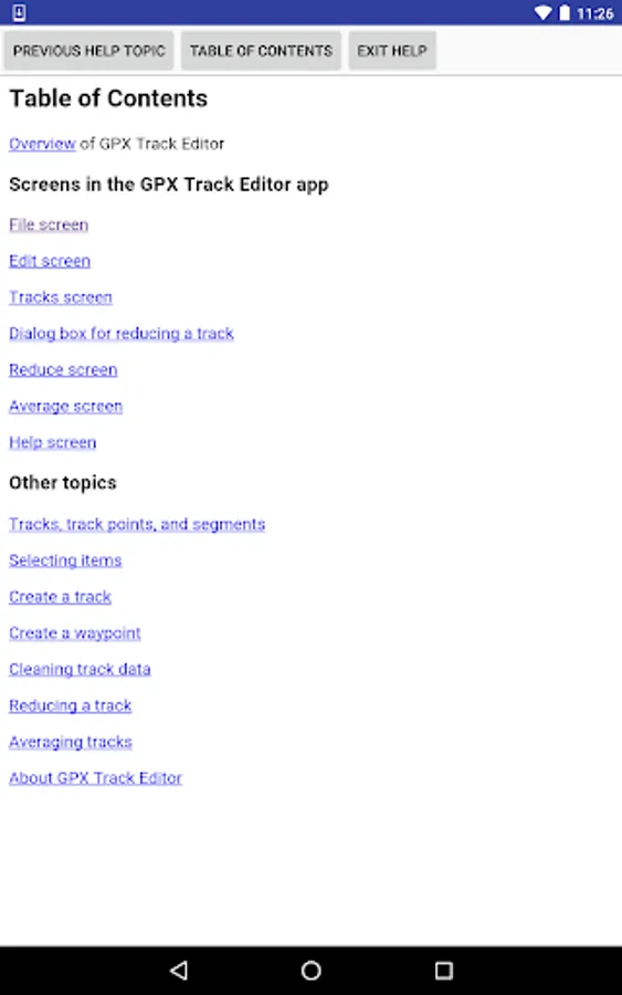 PRIVACY POLICY is available, within the app, from the help system; and, outside the app at the following URL: http://lewlasher.com/GpxTrackEditor/privacy-policy.html