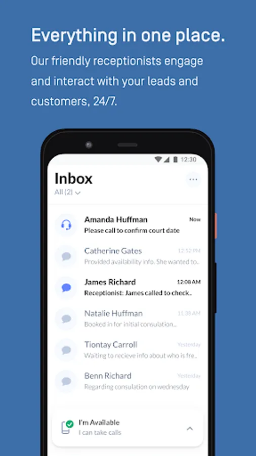 With the LEX Reception Mobile app, your LEX Reception live answering account is always at your fingertips. You’ll be able to keep in touch with customers old and new from your own office, between client meetings, or anywhere you need to be.