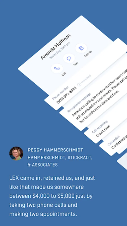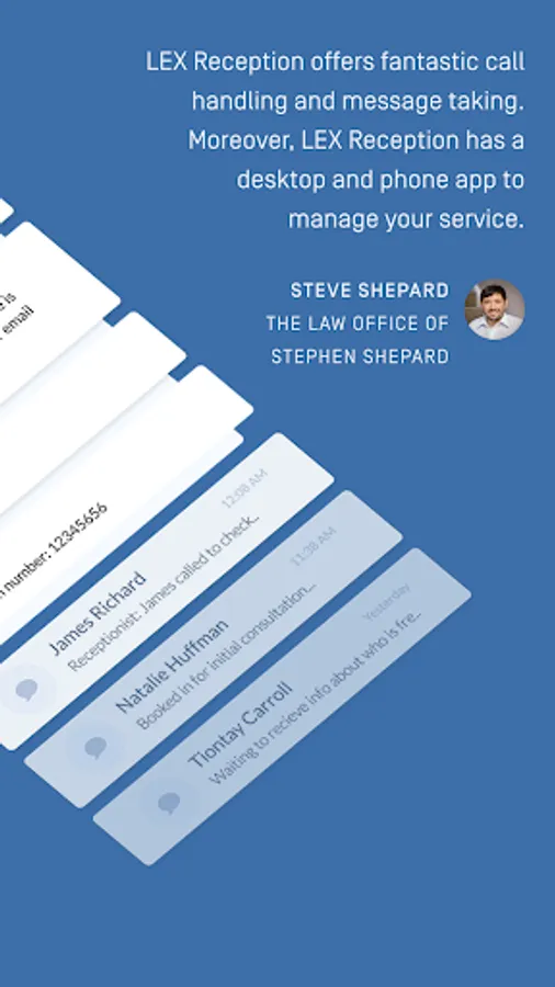 Access and update your LEX Reception live reception account on your Android mobile with LEX Reception Mobile. Our free app gives you a team of hand-picked, professional receptionists to help your callers around the clock.