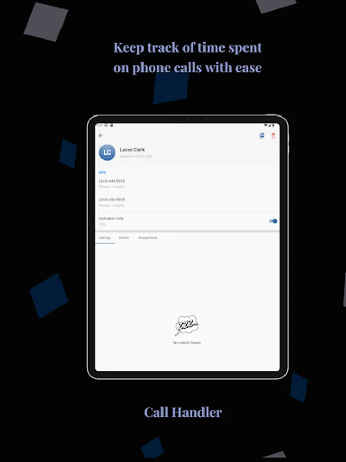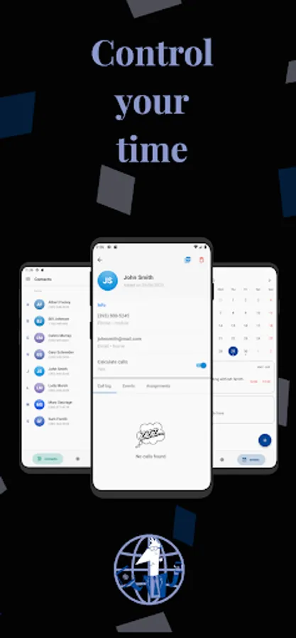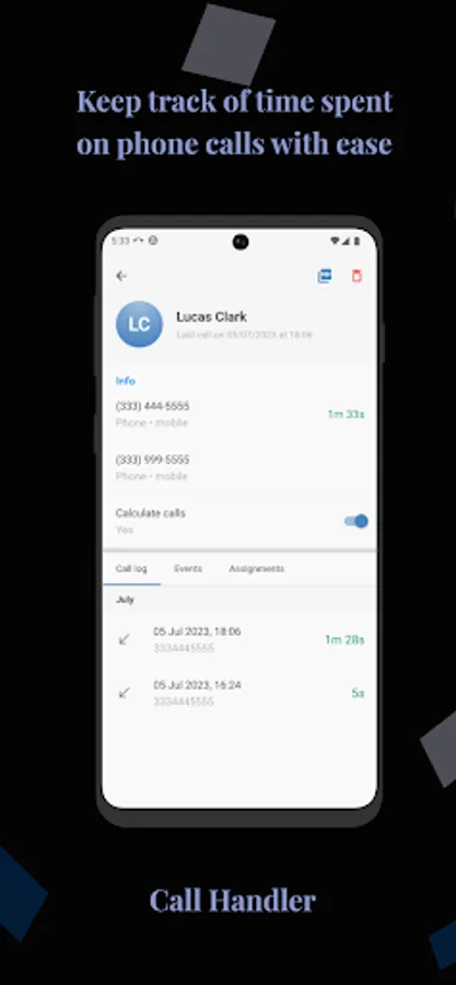 DISCLAIMER: Calls are not recorded, only the time elapsed is used by the application for the purpose of time tracking. The application does not keep track of Whatsapp, Telegram or other third-party application, other than the main phone application on your device.