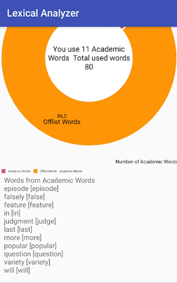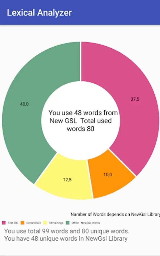 Launched in May 2018, this online free tool measures the vocabulary richness of a text. It also provides evidence about language use that helps to produce more appropriate language in terms of utilizing efficient sets of vocabulary. A text is analyzed through pulling rich vocabulary resources against valid reference word lists, namely General Service List, Academic Word List, Discourse Connectors List, The Academic Collocation List, Frequent Phrasal Verbs and Phrasal Expressions List. The ultimate goal of this tool is to assist language users in developing and using vocabulary items more effectively.