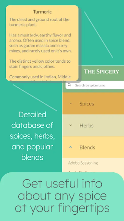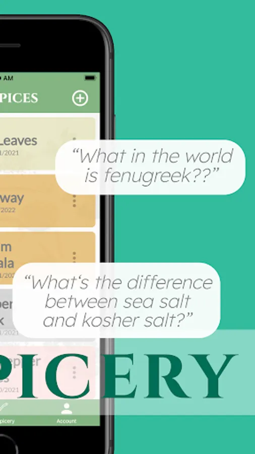 - Save your spice list on a cloud server in case your device is lost or upgraded