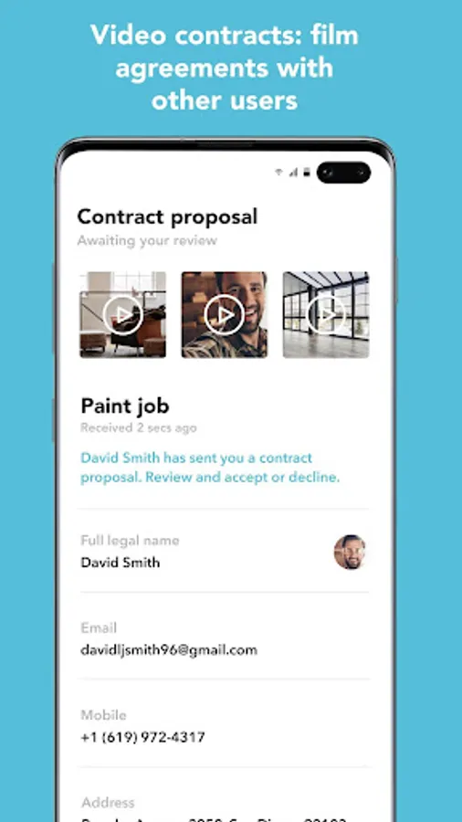 Hiring a contractor or freelancer. Want a room painted? Need a home repair? Visually capture the space or repair involved and set the terms with your contractor. Create another video upon project completion to vouch for a job well done.