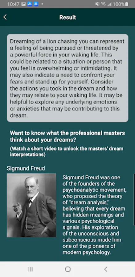 Whether you're an experienced dream interpreter or just starting to explore the world of Dream Interpretation, Dream Discover is a powerful app that can help you gain valuable insights into your subconscious mind and unlock the hidden meanings of your dreams. So why wait? Download Dream Discover today and start exploring the vast world of dream interpretation with the help of advanced AI technology!