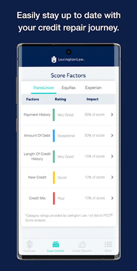 The Lexington Law app lets you follow your credit repair progress. With access to a variety of tools, you can better understand, improve and protect your credit, from your mobile device.