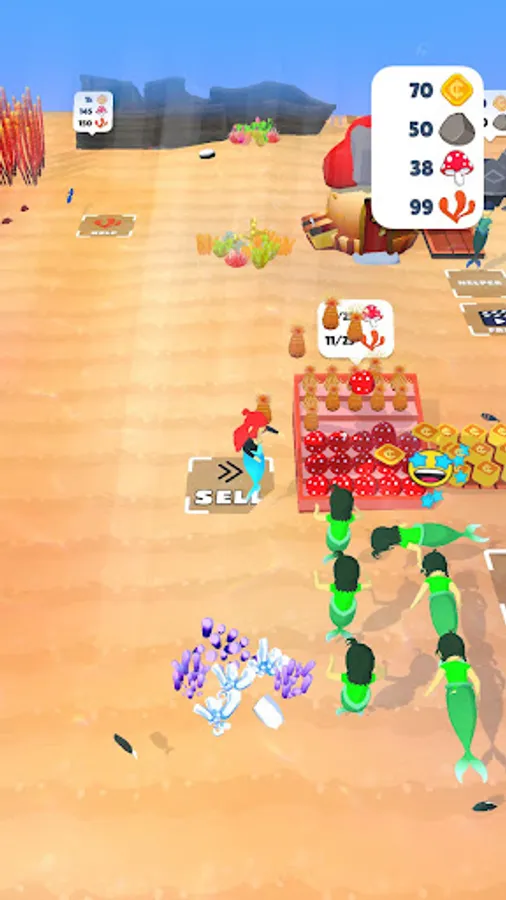 Set up stalls in your colonies to trade your bountiful harvest of oceanic delights. Sell your products to fellow merfolk and sea creatures, and earn precious treasures to expand your underwater realm.