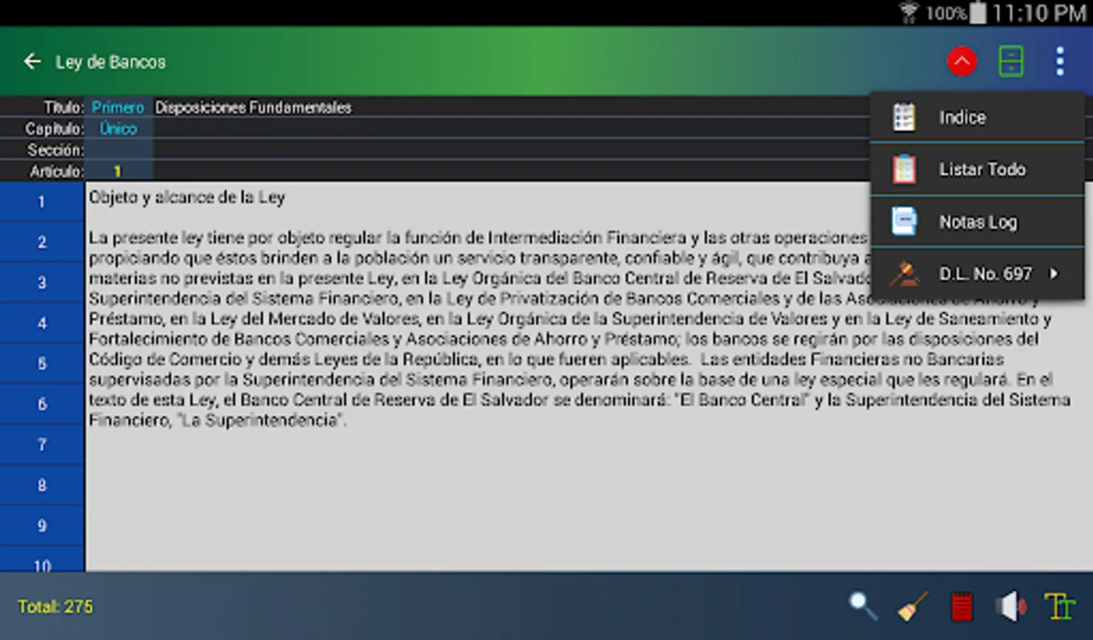 The application allows you to consult the regulations by means of keywords, its search engines present the results in milliseconds. You can now read or listen to the articles of the Code, as well as store your personal notes regarding any article. Tools: Search Engines, Personal Notes, Index Search, Keywords, Text to Speech System, Updates.
