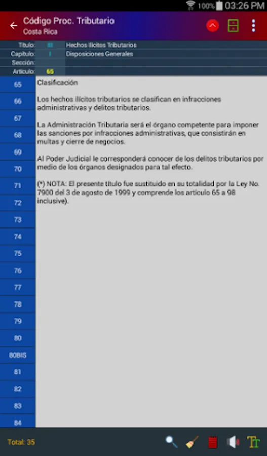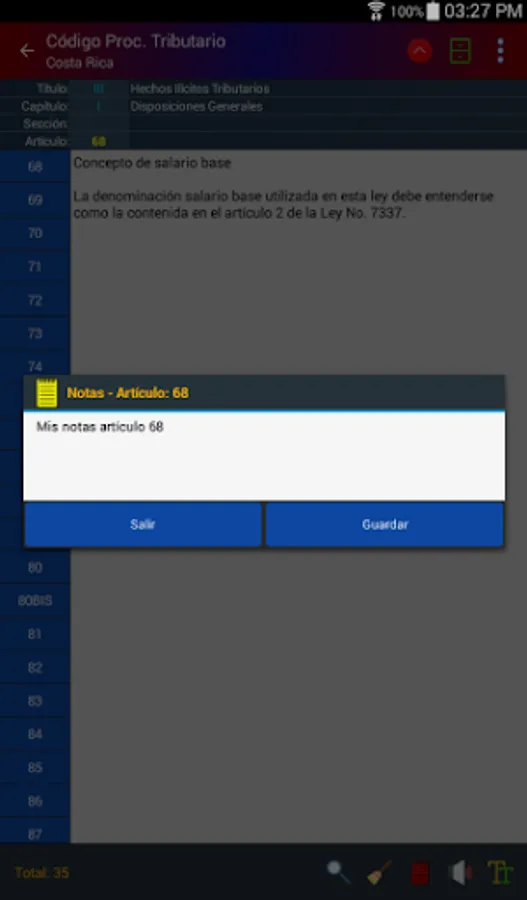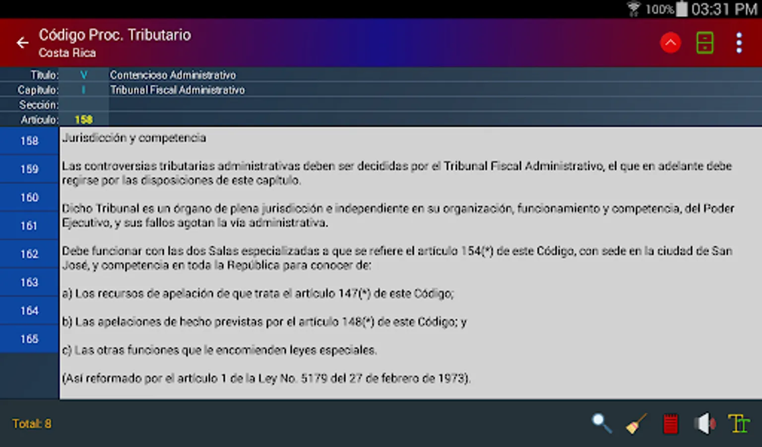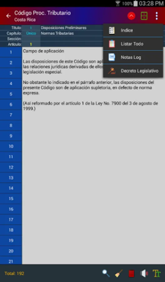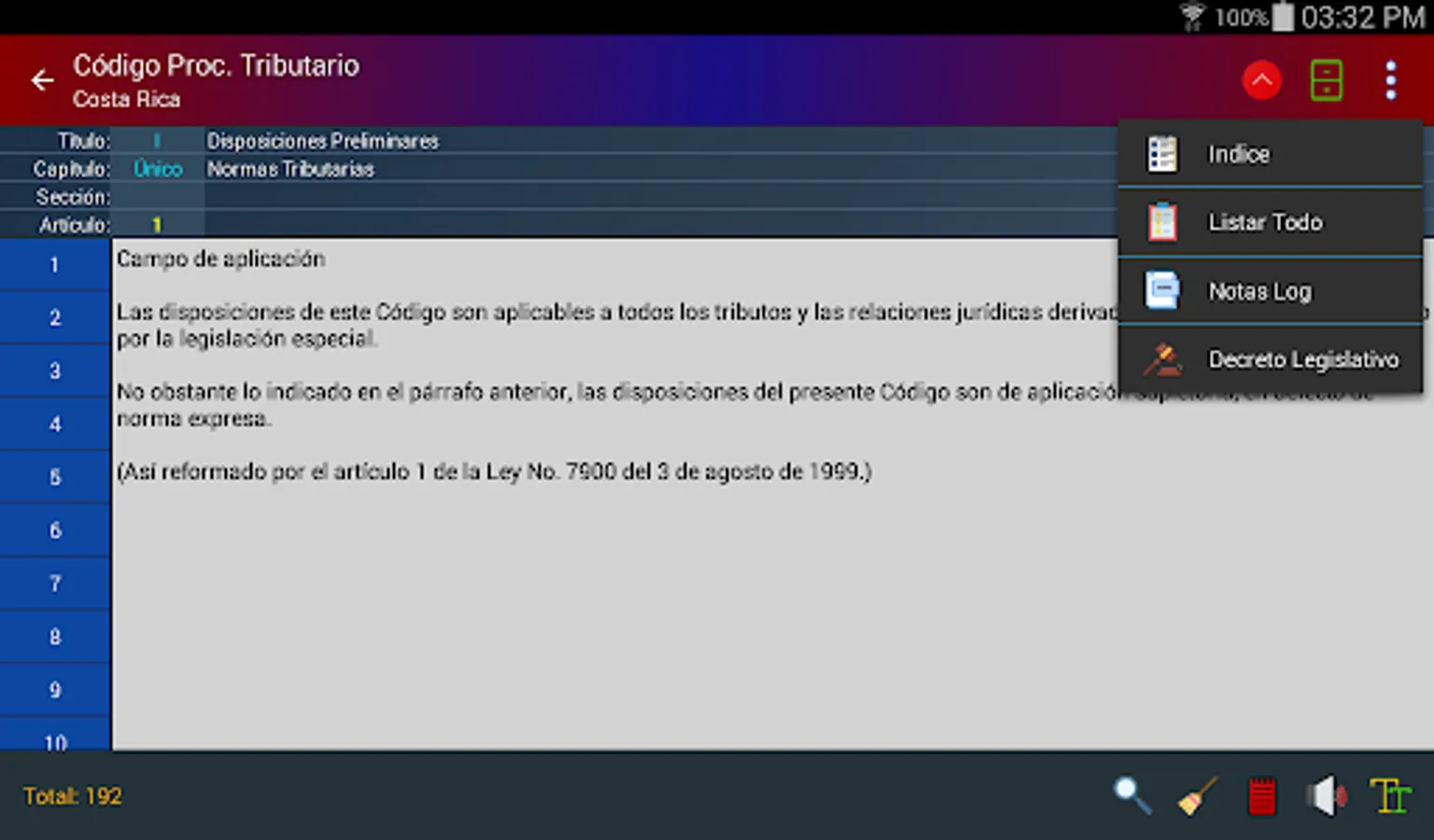The application allows you to consult the regulations by means of keywords, its search engines present the results in milliseconds. You can now read or listen to the articles of the Code, as well as store your personal notes regarding any article. Tools: Search Engines, Personal Notes, Index Search, Keywords, Text to Speech System, Updates.