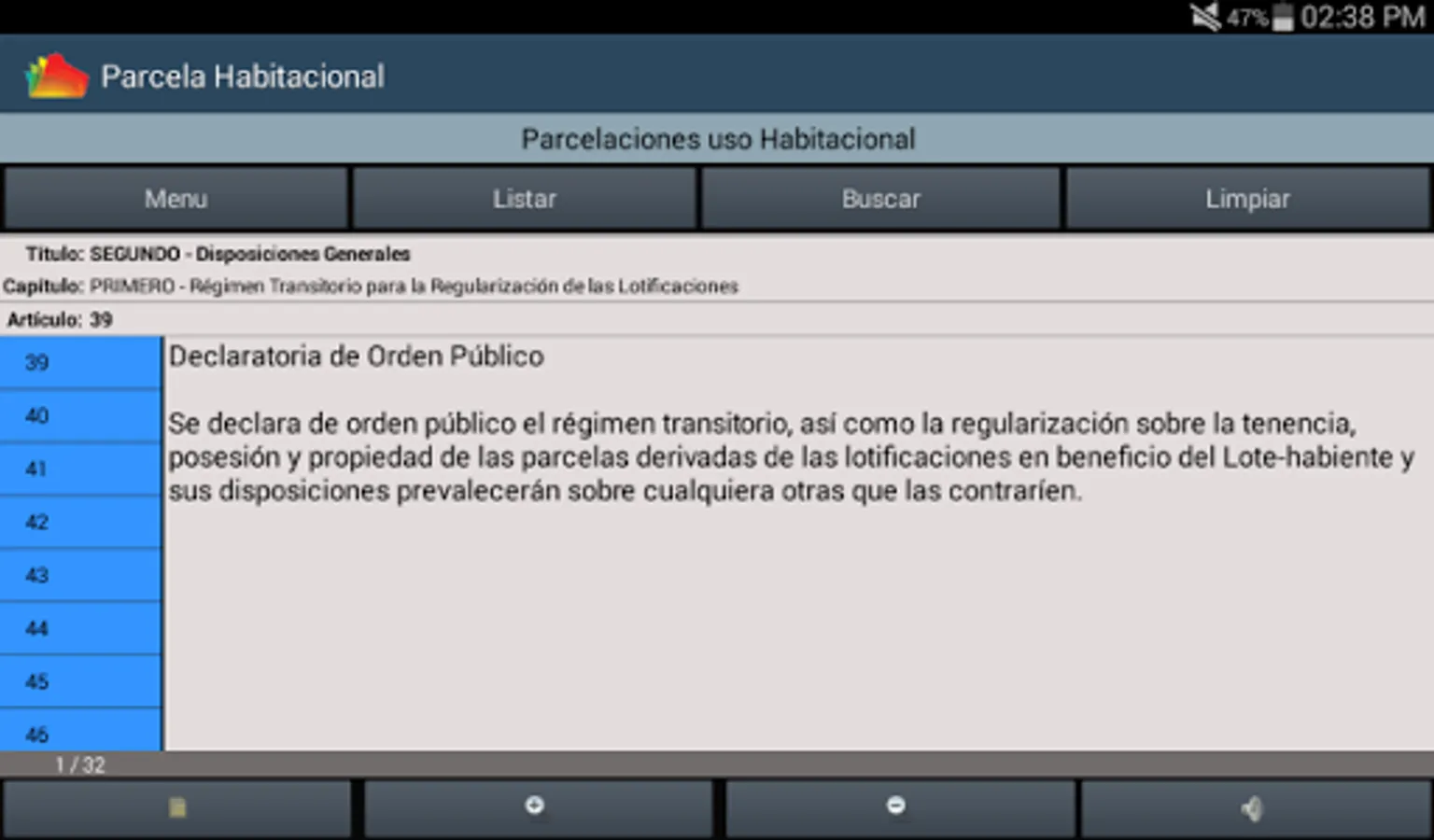 The application allows you to consult the regulations by means of keywords, its search engines present the results in milliseconds. You can now read or listen to the articles of the Code, as well as store your personal notes regarding any article. Tools: Search Engines, Personal Notes, Index Search, Keywords, Text to Speech System, Updates.