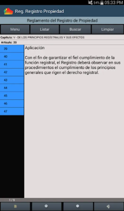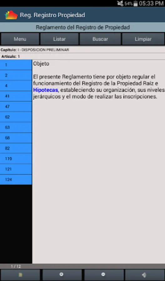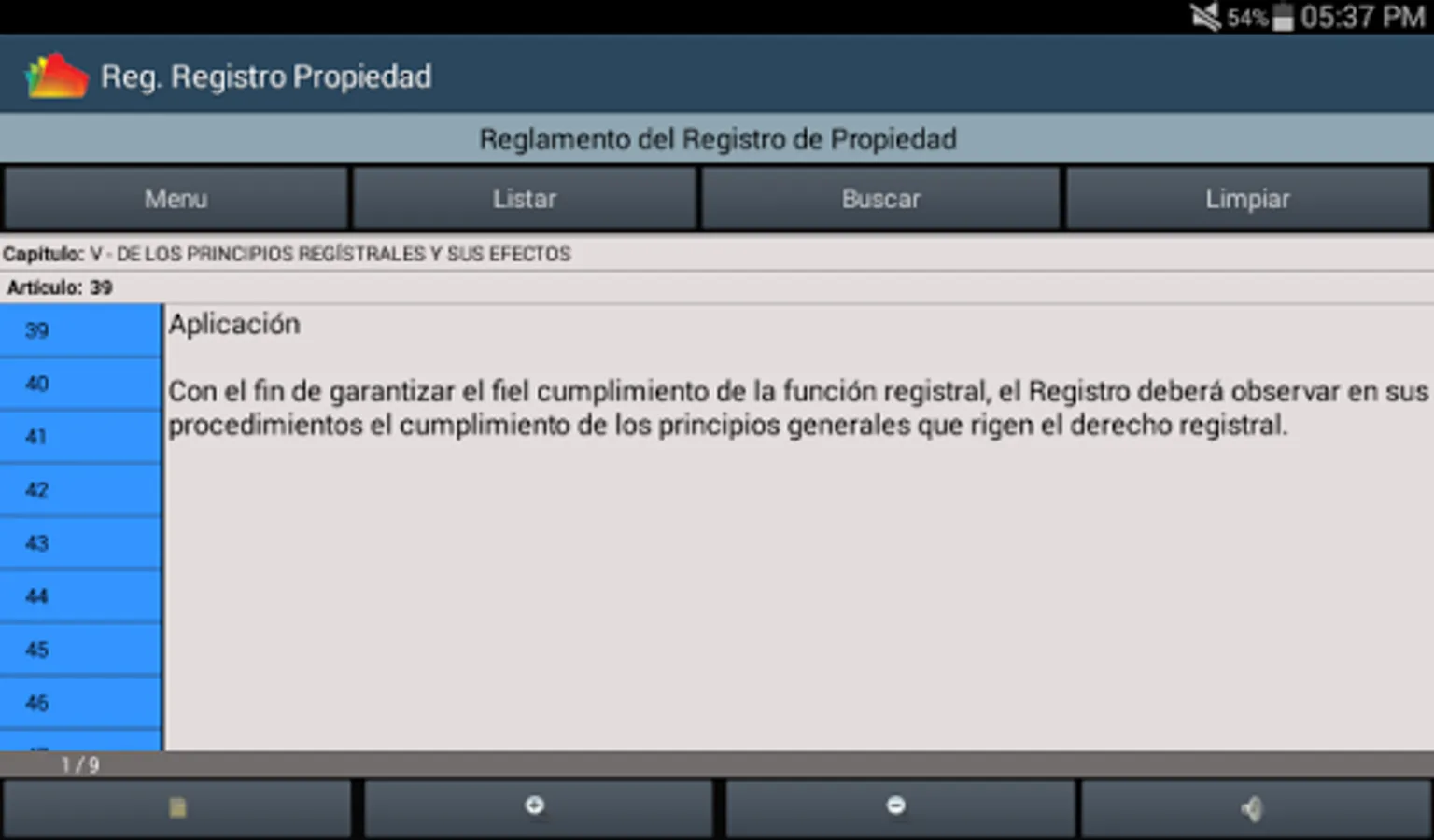 The application allows you to consult the regulations by means of keywords, its search engines present the results in milliseconds. You can now read or listen to the articles of the Code, as well as store your personal notes regarding any article. Tools: Search Engines, Personal Notes, Index Search, Keywords, Text to Speech System, Updates.