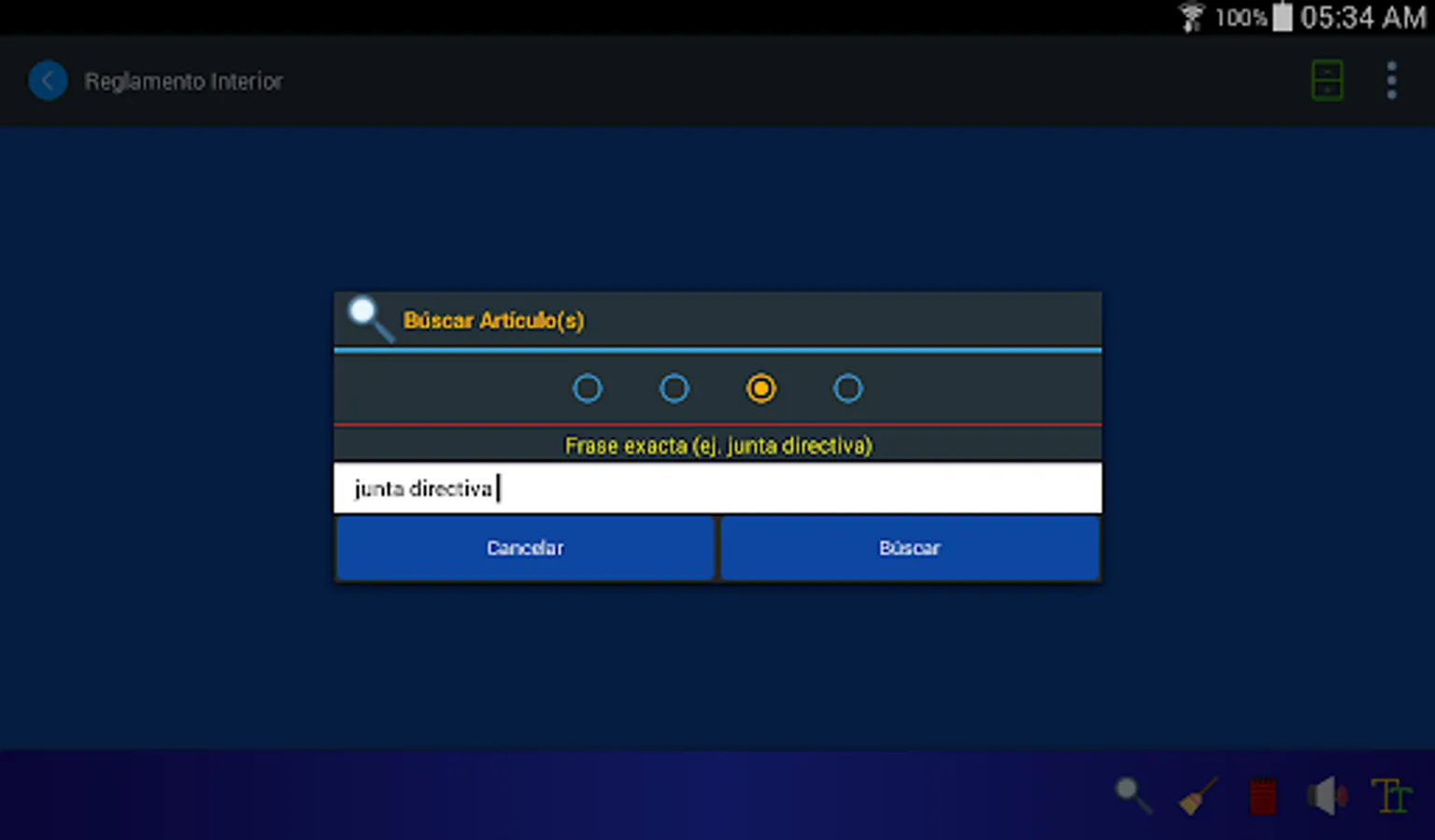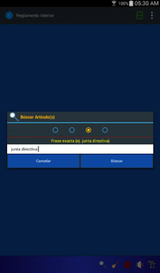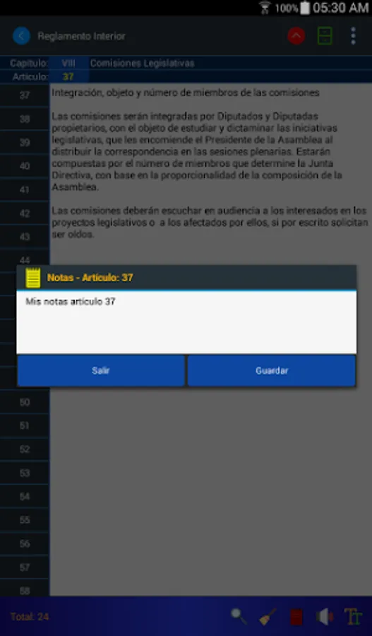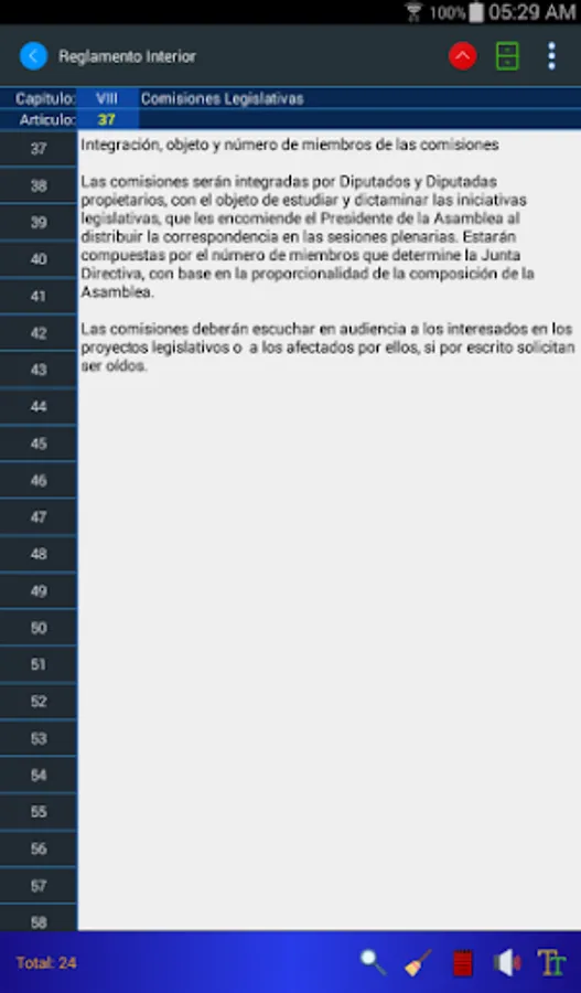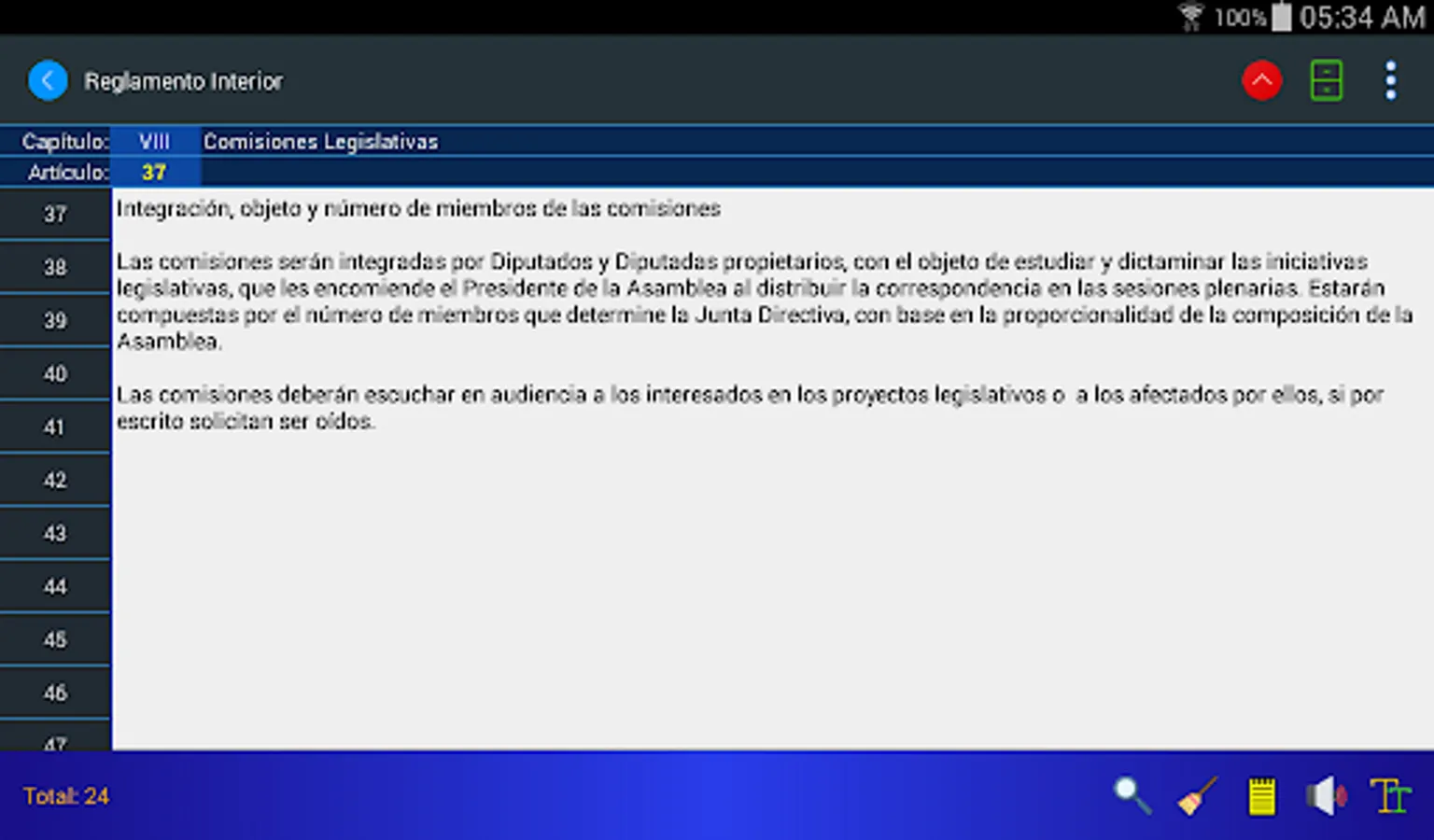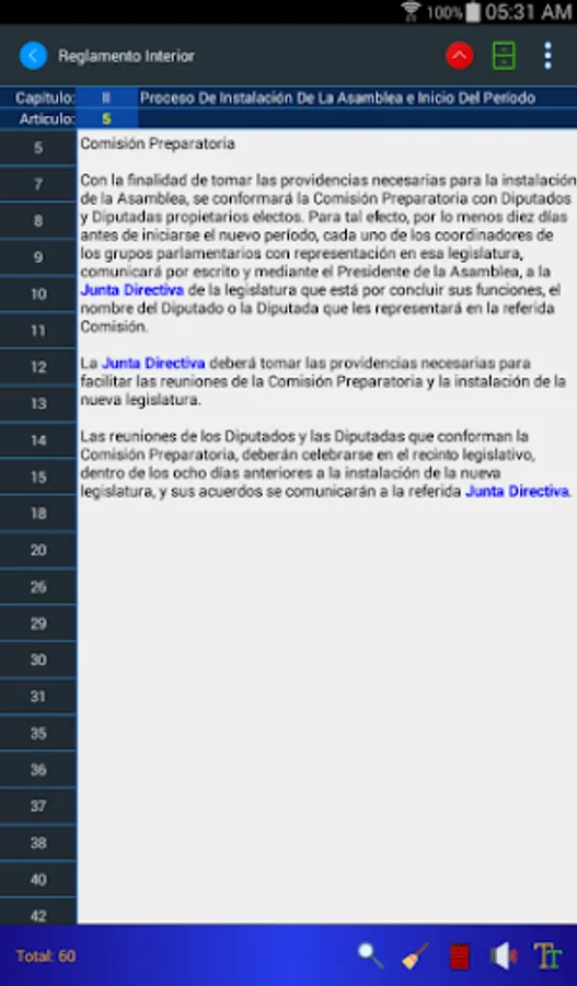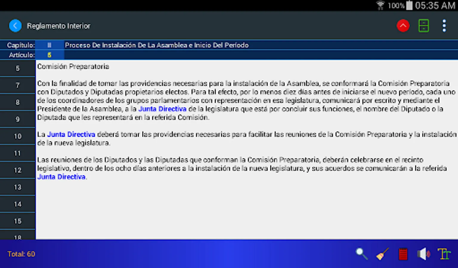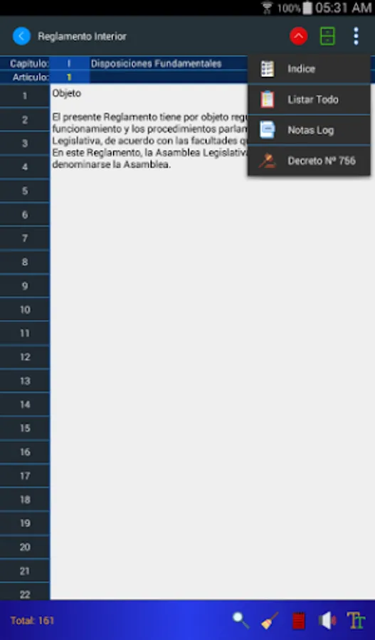 The Internal Regulations application for mobiles allows you to consult the regulations by means of keywords, its search engines present the results in milliseconds. Now you can listen to the articles of the Regulation and store your personal notes regarding any article.