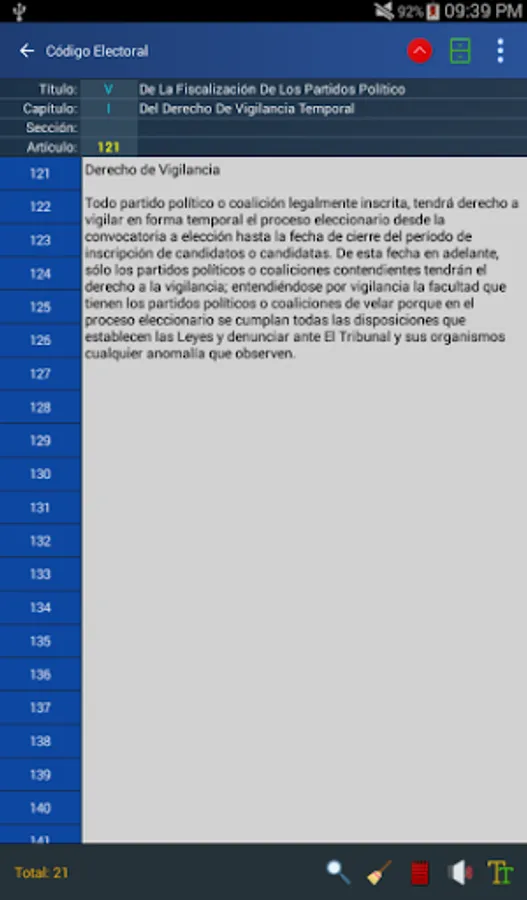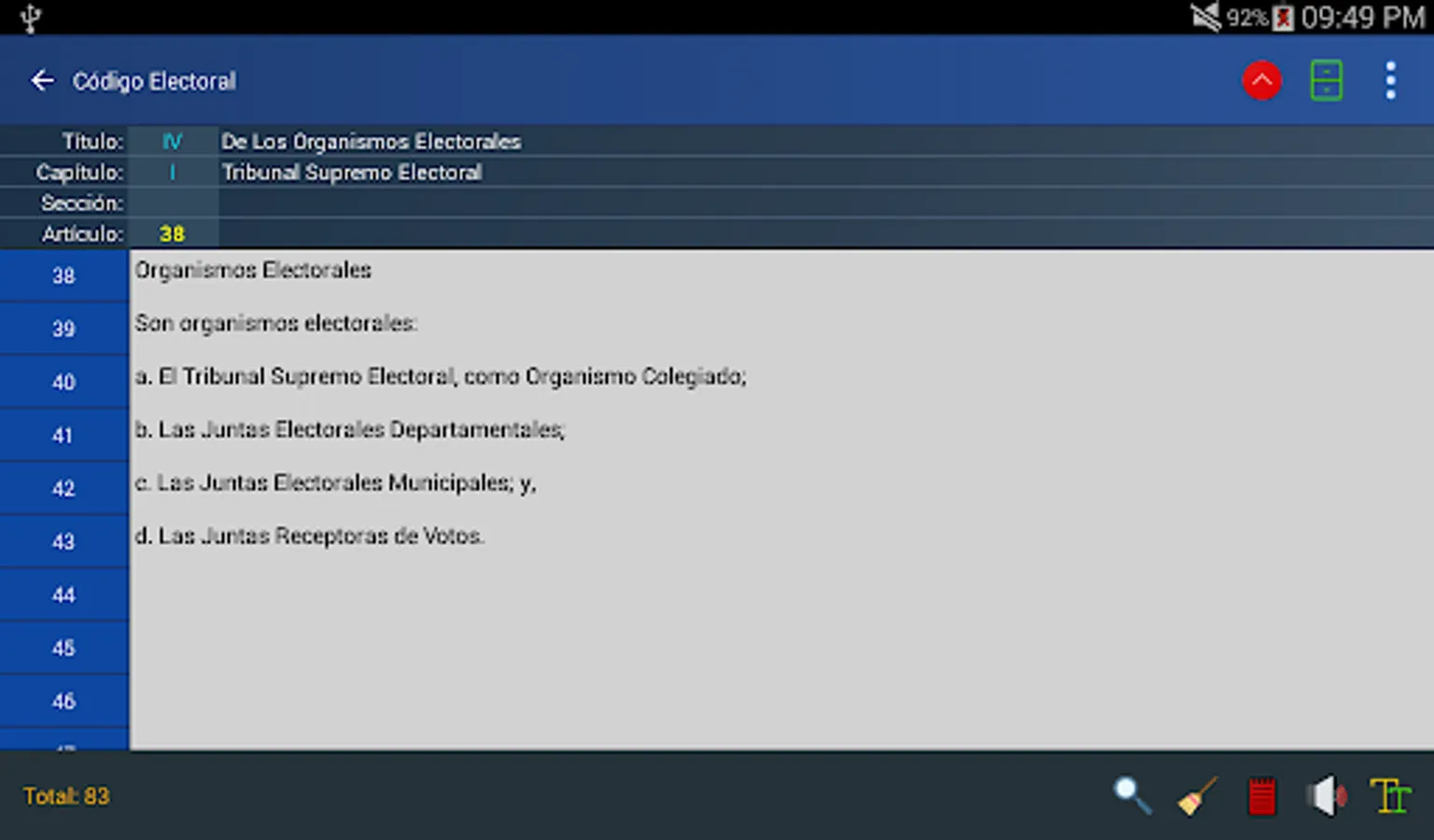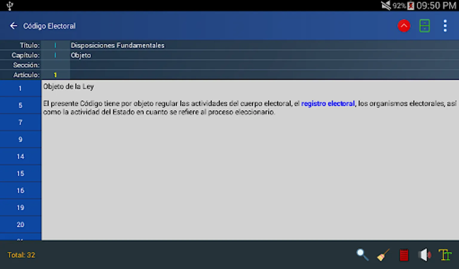 The application allows you to consult the regulations by means of keywords, its search engines present the results in milliseconds. You can now read or listen to the articles of the Code, as well as store your personal notes regarding any article. Tools: Search Engines, Personal Notes, Index Search, Keywords, Text to Speech System, Updates and Reforms.