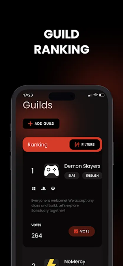 Compete with other players and vote for your favorite guild to be featured at the top of the leaderboard. They will know your name!