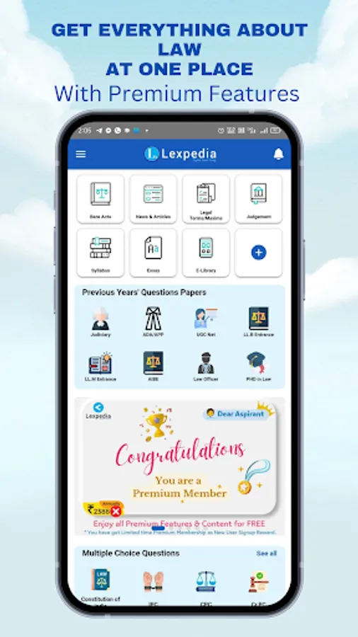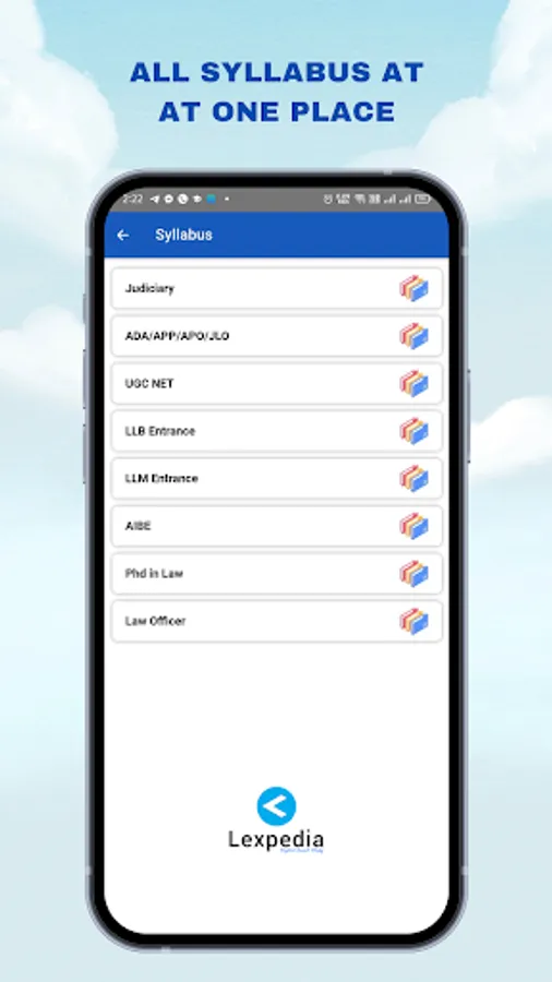 Lexpedia (Legal Encyclopaedia) is an end to end application specifically designed for Indian Judicial Services Preparation and all other Legal Exams i.e. Judiciary, ADA/APP/ADPO/APO, UGC-NET, LL.B, LL.M, AIBE, Law Officer exams, Phd. Entrance exams. With attractive features and in an easy to use format, Lexpedia is the perfect companion to any student of law anywhere in India.