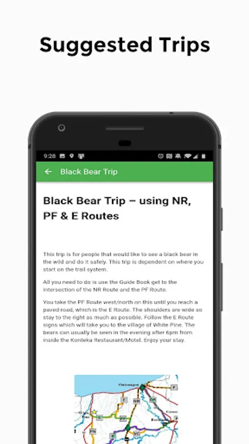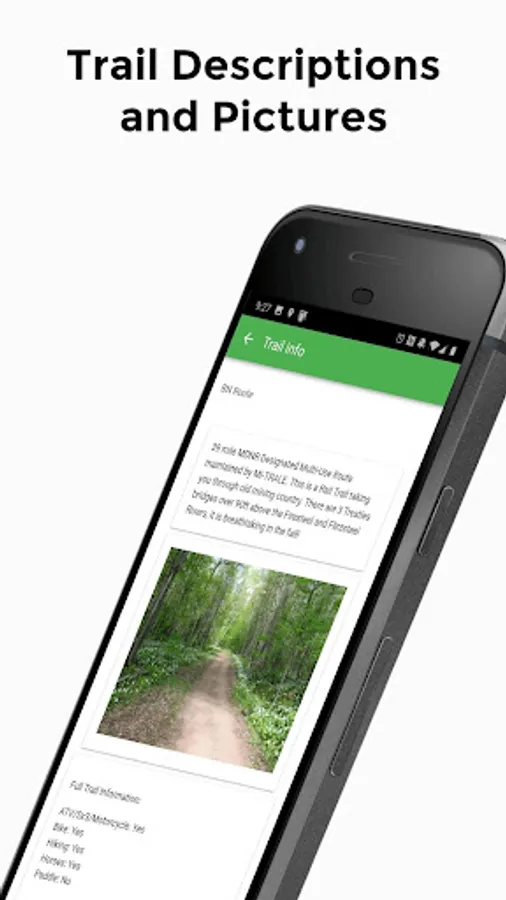 App is user friendly showing an easy to follow map marked trails, points of interest, fuel, food, lodging, camping, services, photos and more. 1000+ miles of State, Local and National Forest ATV/UTV and Multi-use routes and trails. 15 different planned ATV/UTV and Multi-use rides & loops including total mileage, sites to see, places to eat, camp, stay and visit. Water trails for kayak’s and canoeing showing water class, launch and take out sites. 25+ miles of Horse trails to follow including trailheads for parking and camping sites. 4 different Bike trails systems and miles and miles of multi-use route that share with bikes. Endless miles of hiking trails through the wilderness of the Upper Peninsula. Enjoy the Trails!!