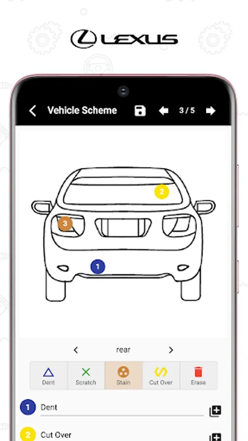 • Circle check (Walk Around Check) of vehicles with inspection templates, mobile camera, snapshots.