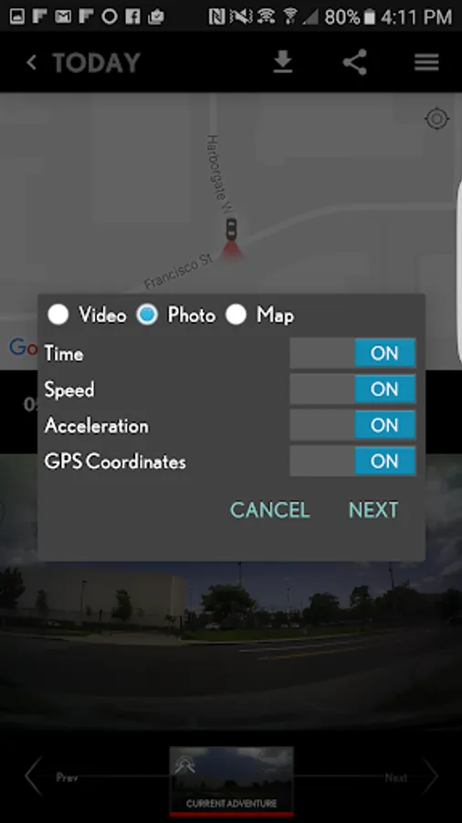 5) Adventure Mode recording – capture your driving adventures. Press and hold the “ACTION” button on the camera for 1 second to start protecting the recorded videos. The Adventure Mode recording will stop protecting files after maximum time is reached, or when the “ACTION” button is pressed and held again for 1 second. Maximum of 1 hour of Adventure Mode videos can be protected from overwriting.