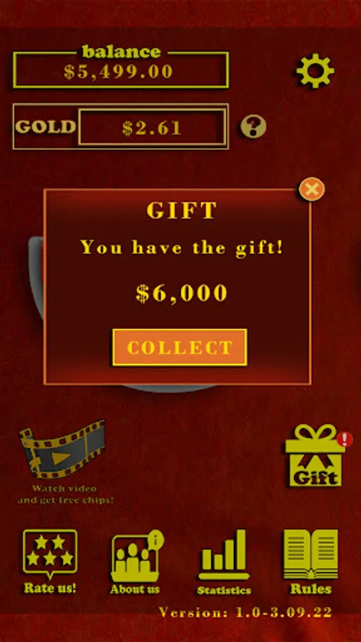• Random gold bonus chips.1 Gold chip is equal 10 000 casino chips;
