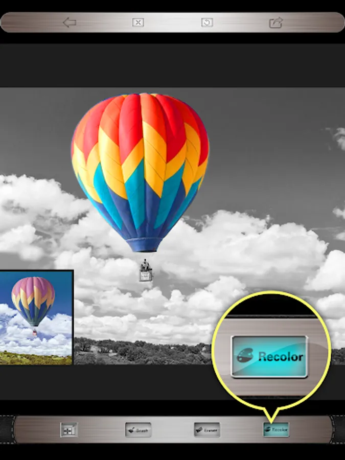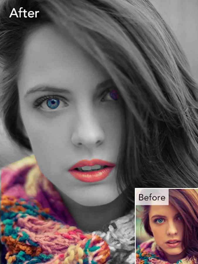 You can choose to recolor your photos with vivid colors: red, yellow, blue, green or the boring black and white.