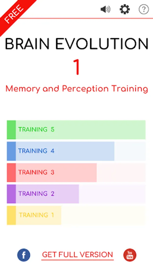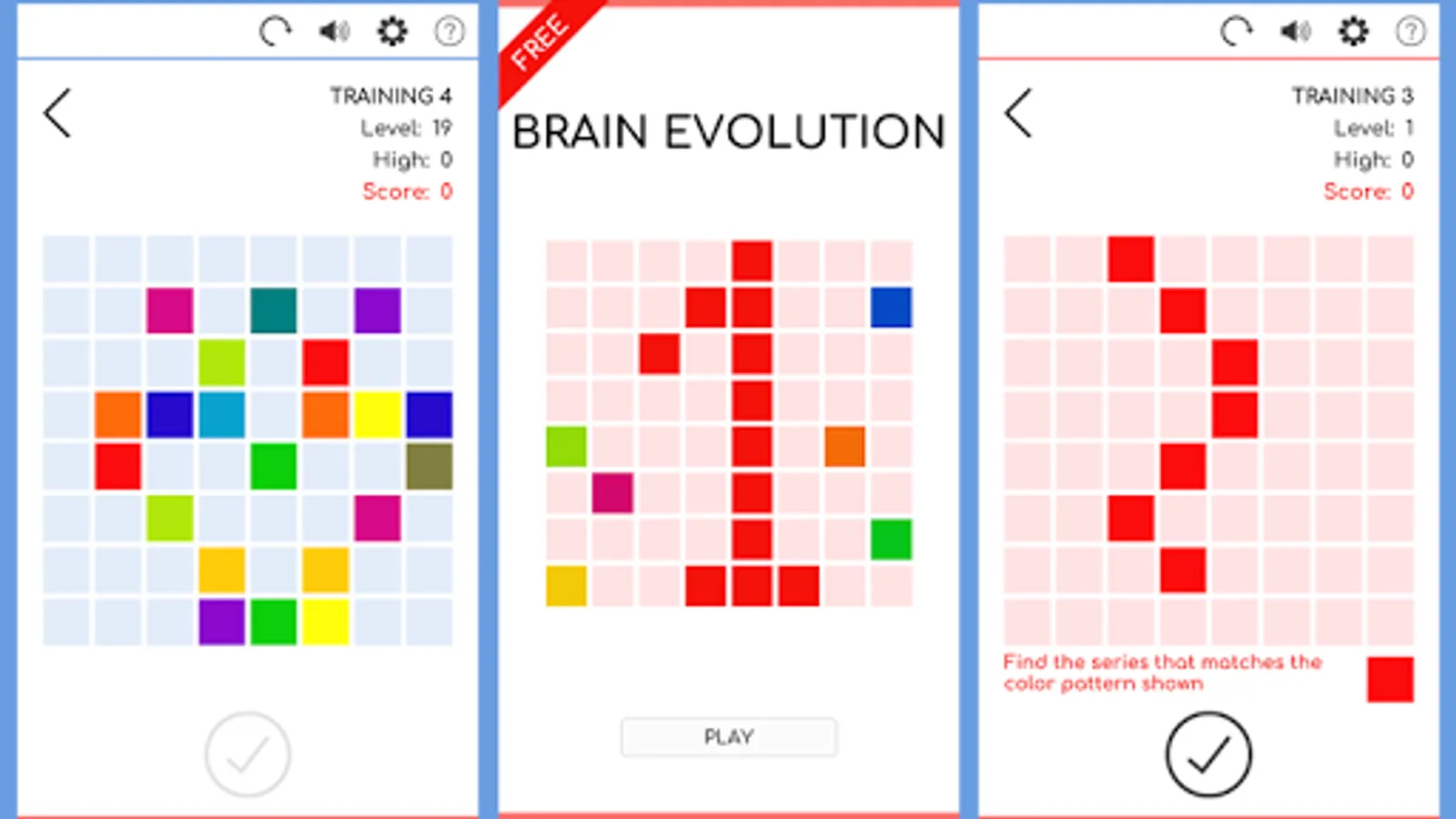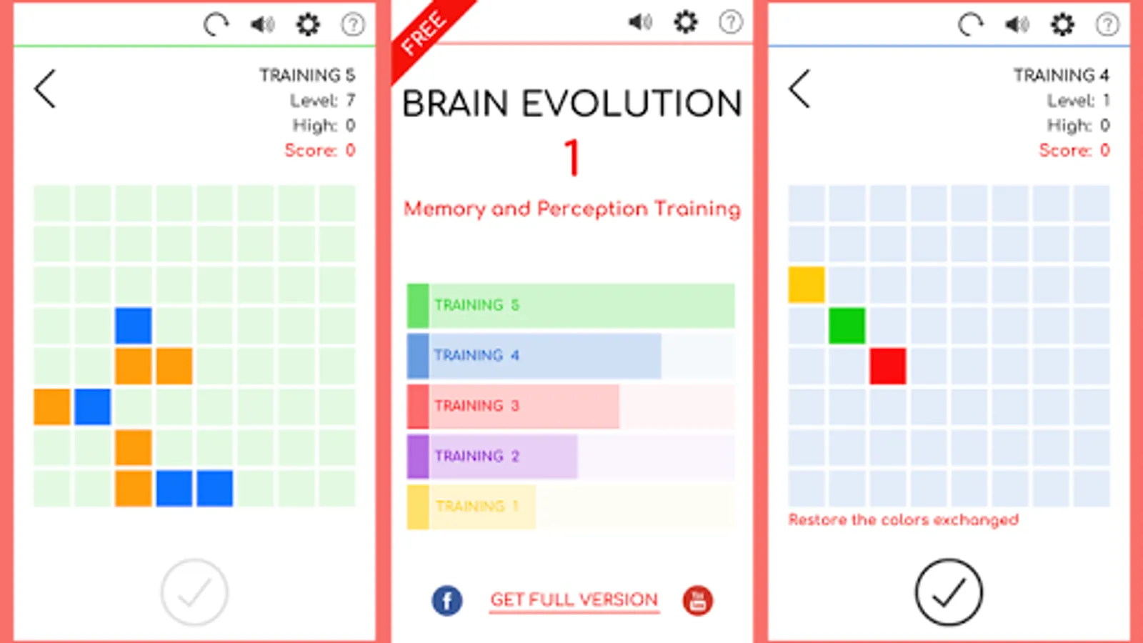 1 FREE BRAIN EVOLUTION is the first application of the Brain Evolution series, it includes 5 workouts With 20 levels each allow progressive training That of perception and memory.