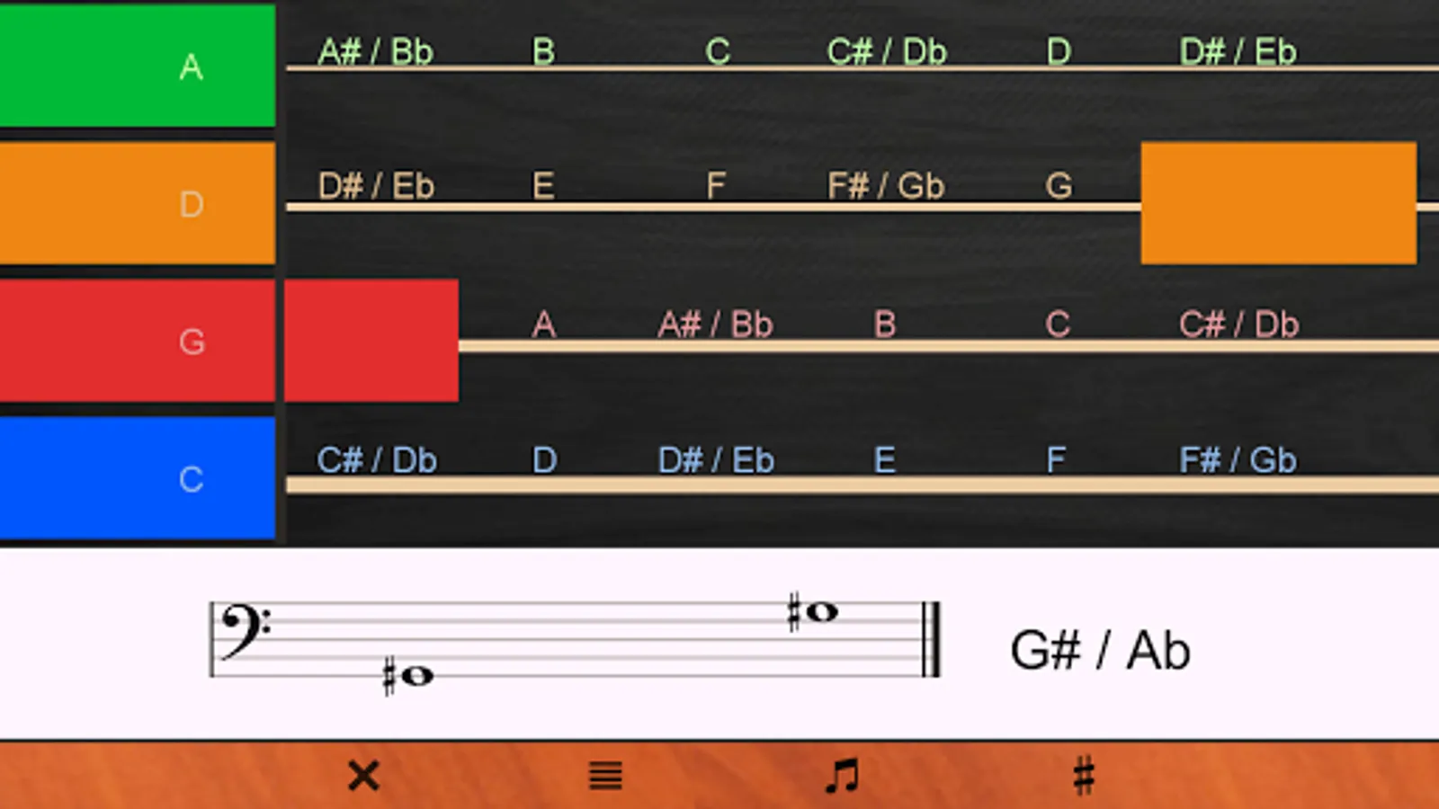 Through this application it is possible to learn to relate the musical notes in the staff with the corresponding musical notes in the first position of the cello.
