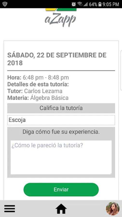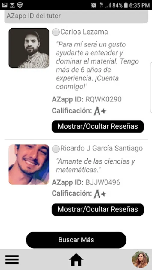 AZapp immediately responds with a list of tutors who meet their needs. Among other things, the user can see reviews of the tutors by past students.