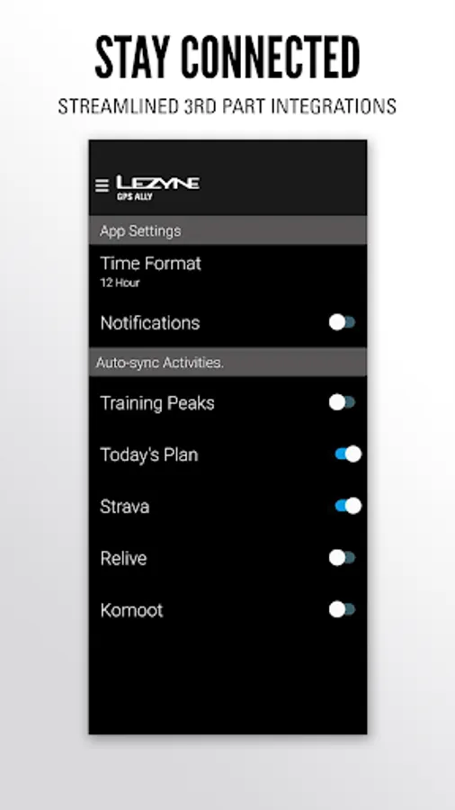 Part of our complete GPS ecosystem, the Lezyne Ally app is the key link between your phone and your Lezyne GPS device. The free app features the latest interactive and real-time technologies designed to enhance your cycling experience. Once paired to one of our GPS devices, you'll enjoy easy device customization, wireless ride syncing, route loading and mapping, and so much more. Experience effortless navigation, import .tcx and .gpx files, and connect cycling routes directly through the application. Additionally, the app is an easy-to-use resource to instantly save, store, and review rides from the palm of your hand. Activities can then be auto-synced to third party apps such as Strava, Komoot, Relive, TrainingPeaks, and more, as well as shared to popular social media outlets like Facebook and Twitter.