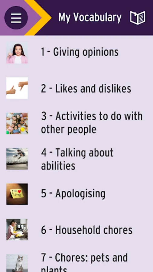 My vocabulary - Recycle the vocabulay from each lesson and add your own words, photos and sounds.
