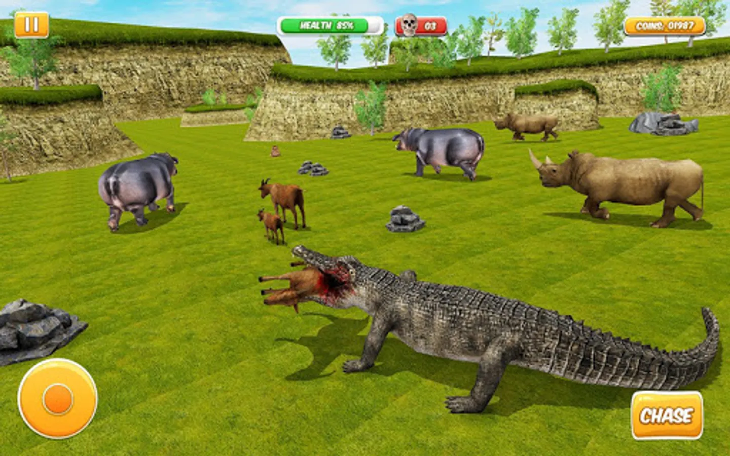 Welcome to the world of predators, in this crocodile simulator game you have to play like a predator. For the survival of a wild animal in this survival game, you have to hunt the prey and kill your hunger. You are a giant crocodile and you don’t need to be feared, if you are afraid to hunt, then you will be the next prey of other animal hunters. Other animal hunters will fill the hunger by you.
