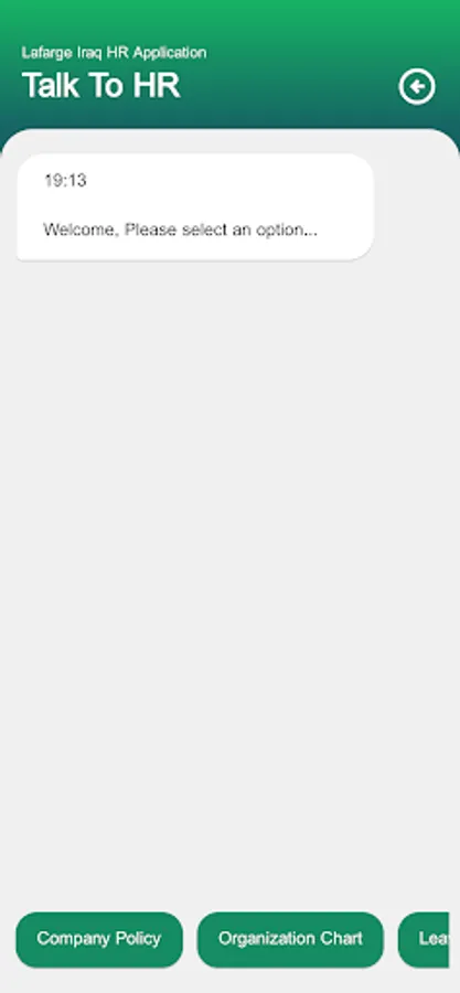 Lafarge Iraq HR initiated this Application in order to be closer to employees and to provide all kinds of facilities and answers which usually employees need in terms of guideline, internal process and organization in general, it automates responses to employee queries related to company policies, travel, leave management, services, among others by consuming organization's policy documents & integrating with existing Oracle EBS.