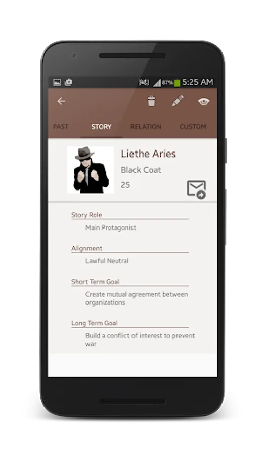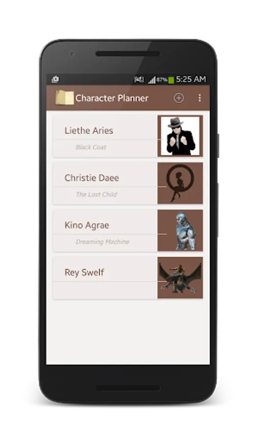 Character planner is targeted for writer which involve in creating games such as RPG maker or other engine, books, plays, etc and everyones who wants to plan to create the story from character detail background