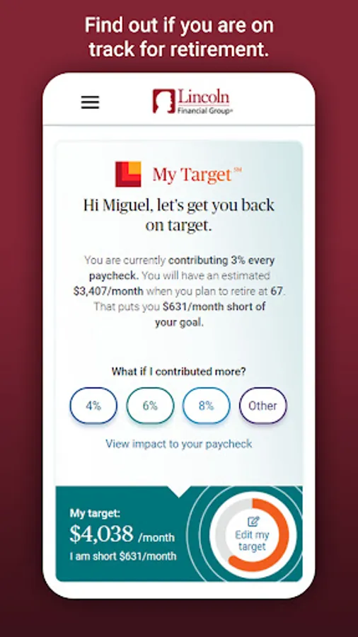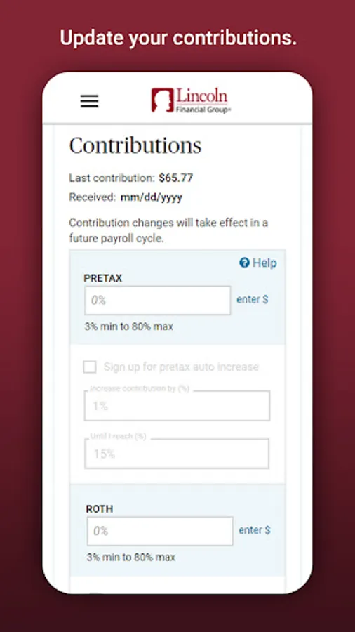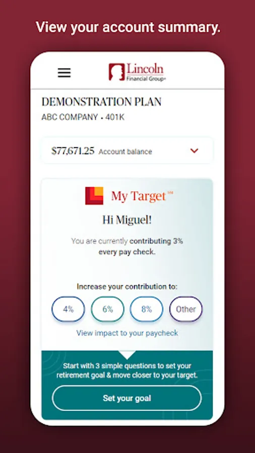 Stay on track with your financial goals using Lincoln Financial Group’s app. Get easy access to forms, check balances and explore helpful videos, calculators and other financial resources. Visit www.LincolnFinancial.com for additional information.