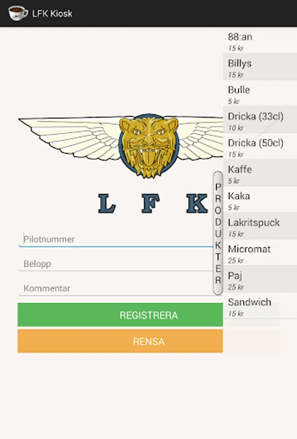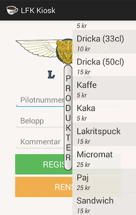 Using your pilot number, you can easily and conveniently purchase items from the range. The integrated product menu saves you from having to keep track of prices and more, click what you want and then press done! It could not be!