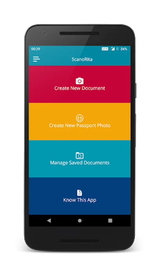 - ScanoRita also allows you to create ready to print passport size photograph using front camera and share it quickly